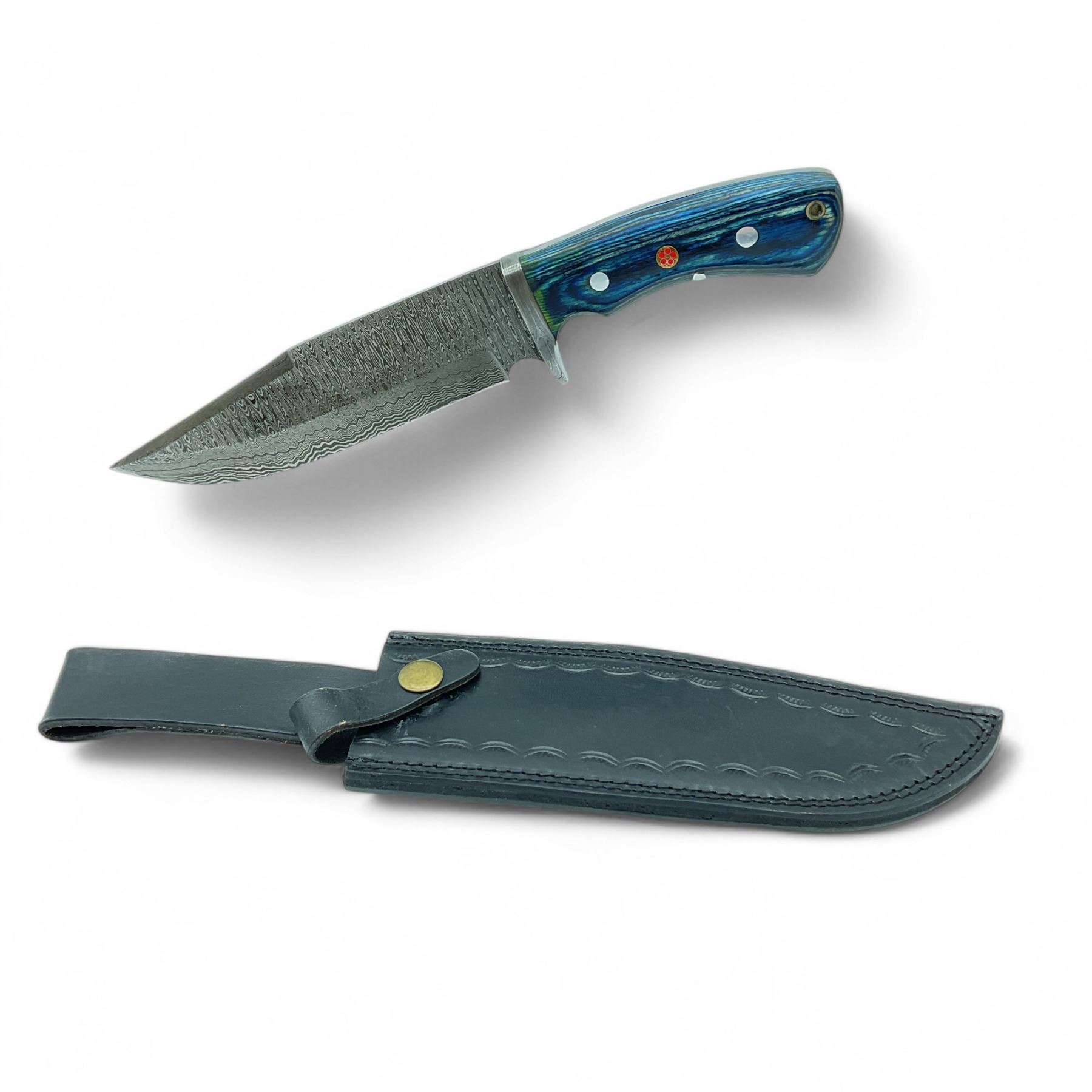 Fixed 7" Damascus Blade Knife with Leather Sheath