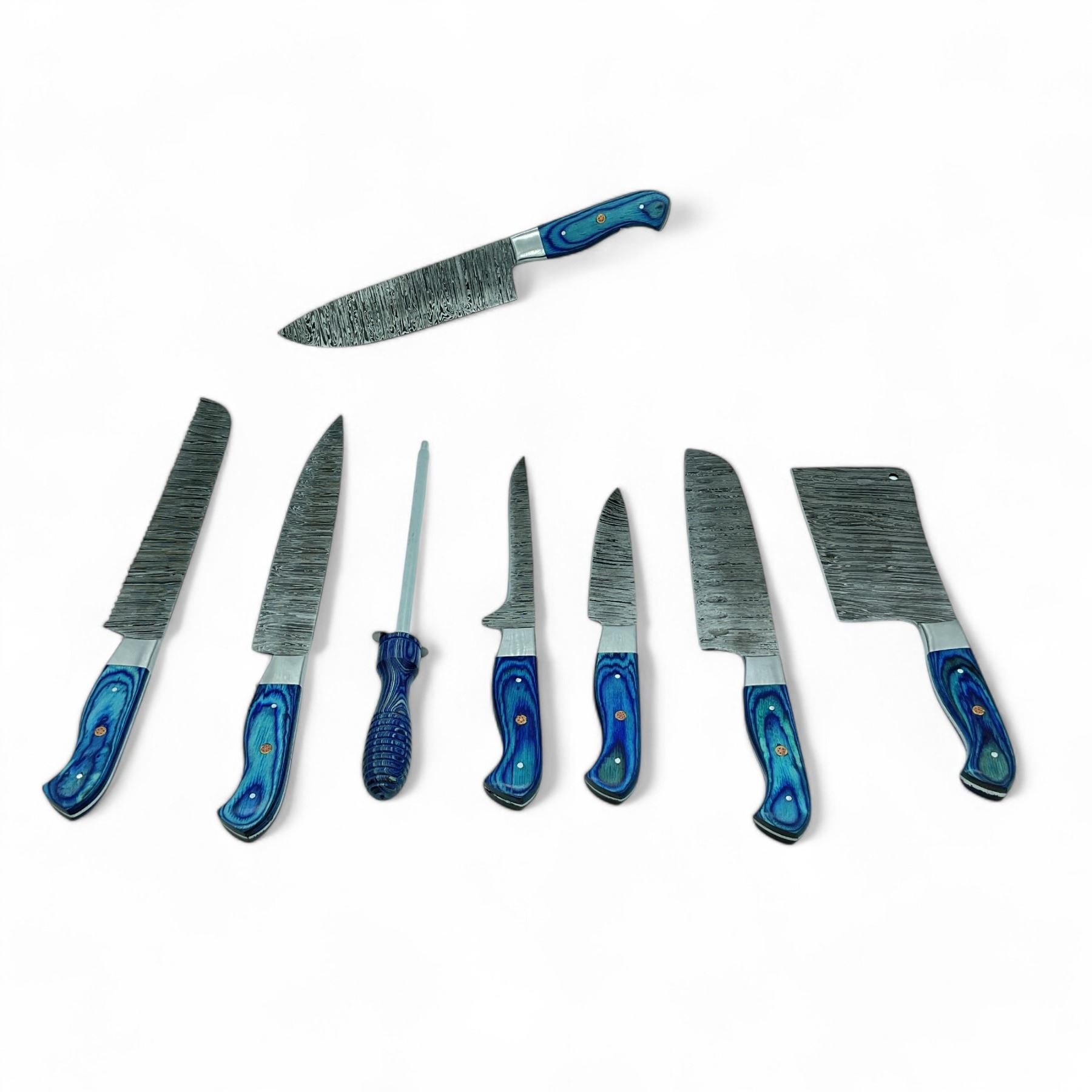 Kitchen Roll 8-Piece Damascus Knife Set with Blue Handles
