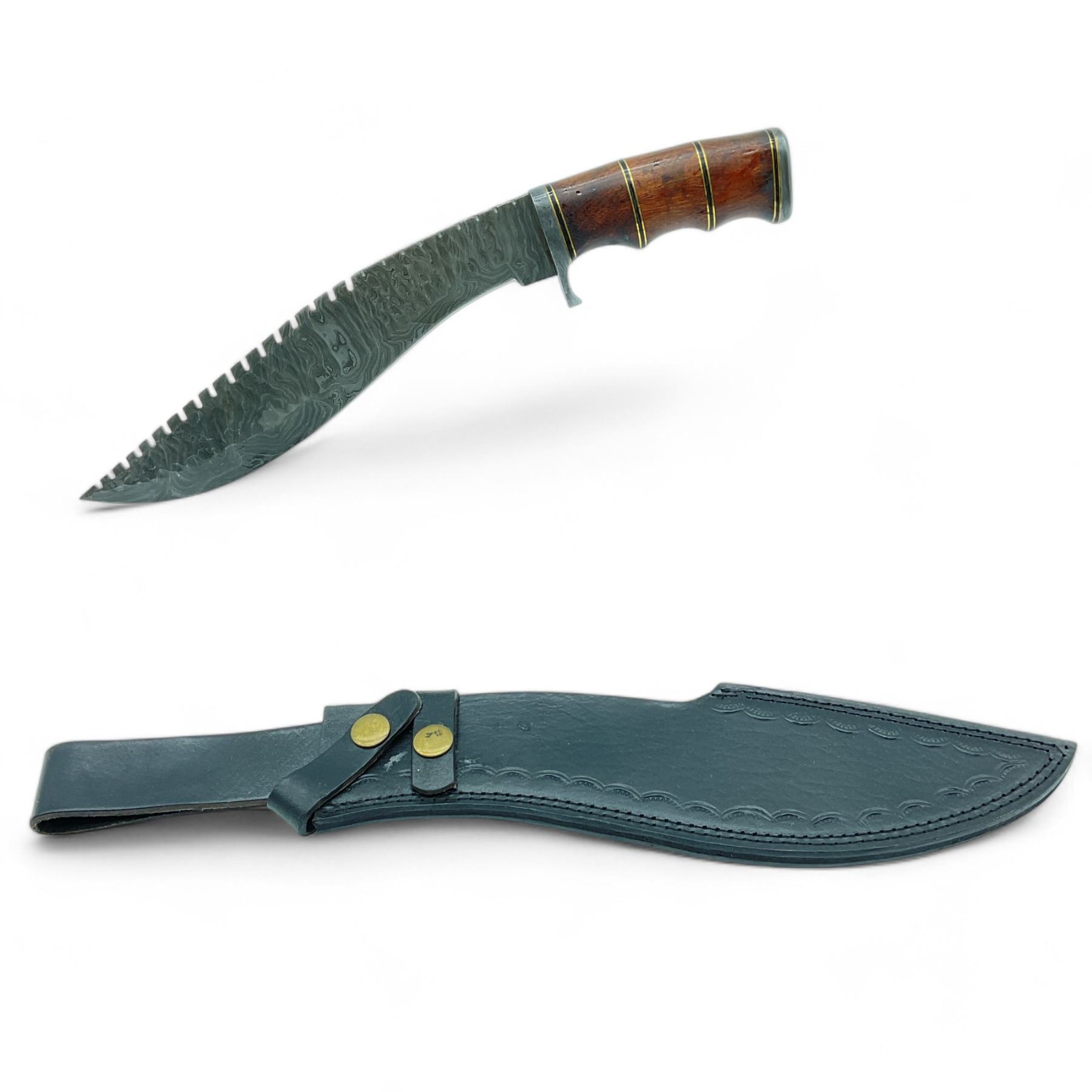 Fixed 9" Damascus Kukri Blade Knife with Leather Sheath