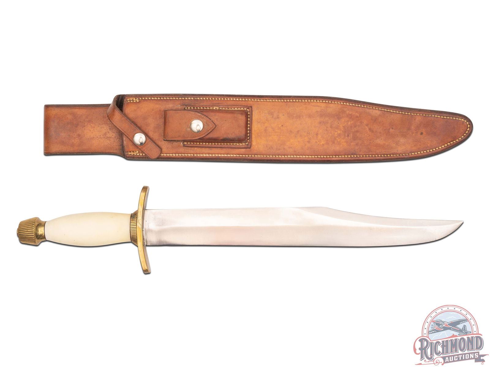 Lot 35 Randall Custom Made Model 12 Raymond Thorp Bowie Knife with Original Leather Sheath