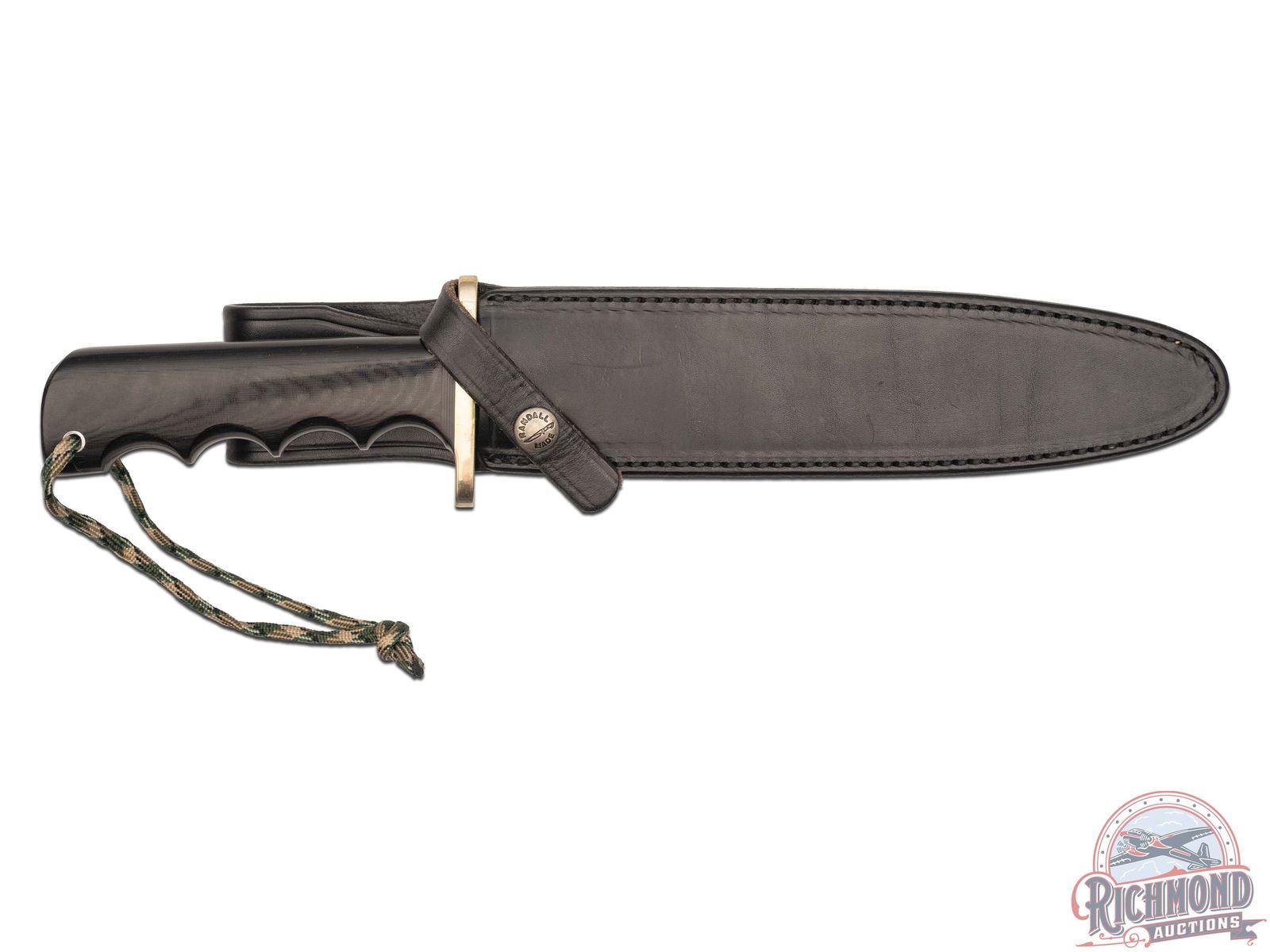 A heavy well made dagger or dirk, this Fighting Stiletto was shaped along the lines of a famous British Commando knife, but made larger, stronger, and fitted with a more comfortable grip. Features an 8" double edge blade. Straight oblong nickel double hilt. Black micarta handle with finger grooves, and paracord wrist thong. Includes factory Model B black leather sheath with logo snaps.
