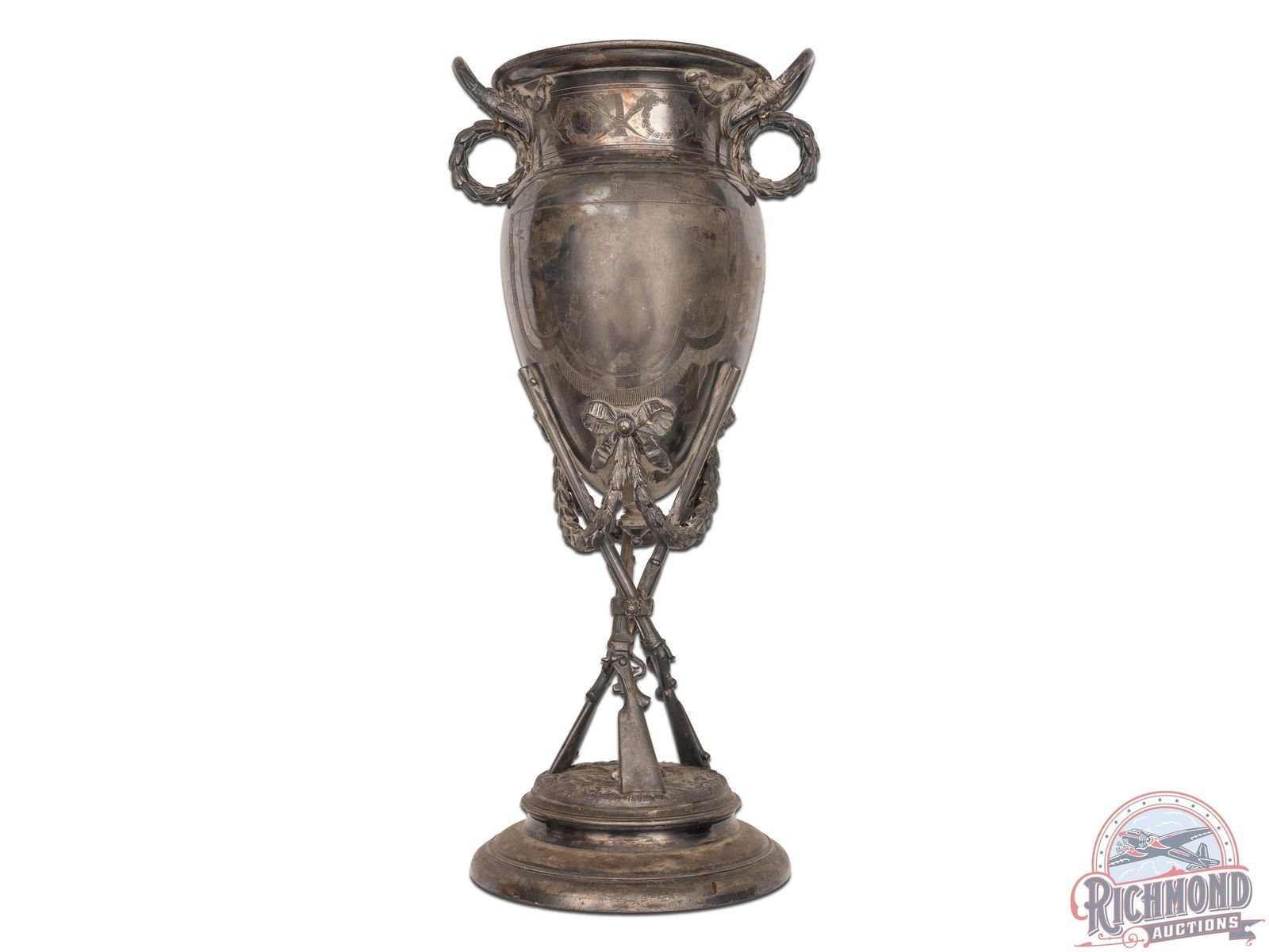 Lot 89 Creedmoor Style Silver Shooting Trophy with Crossed Sharps Rifles