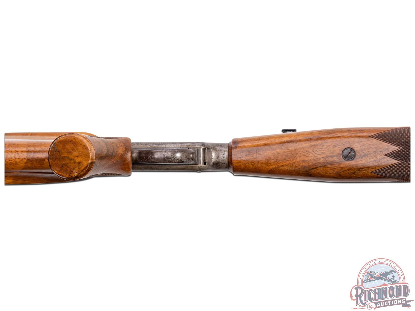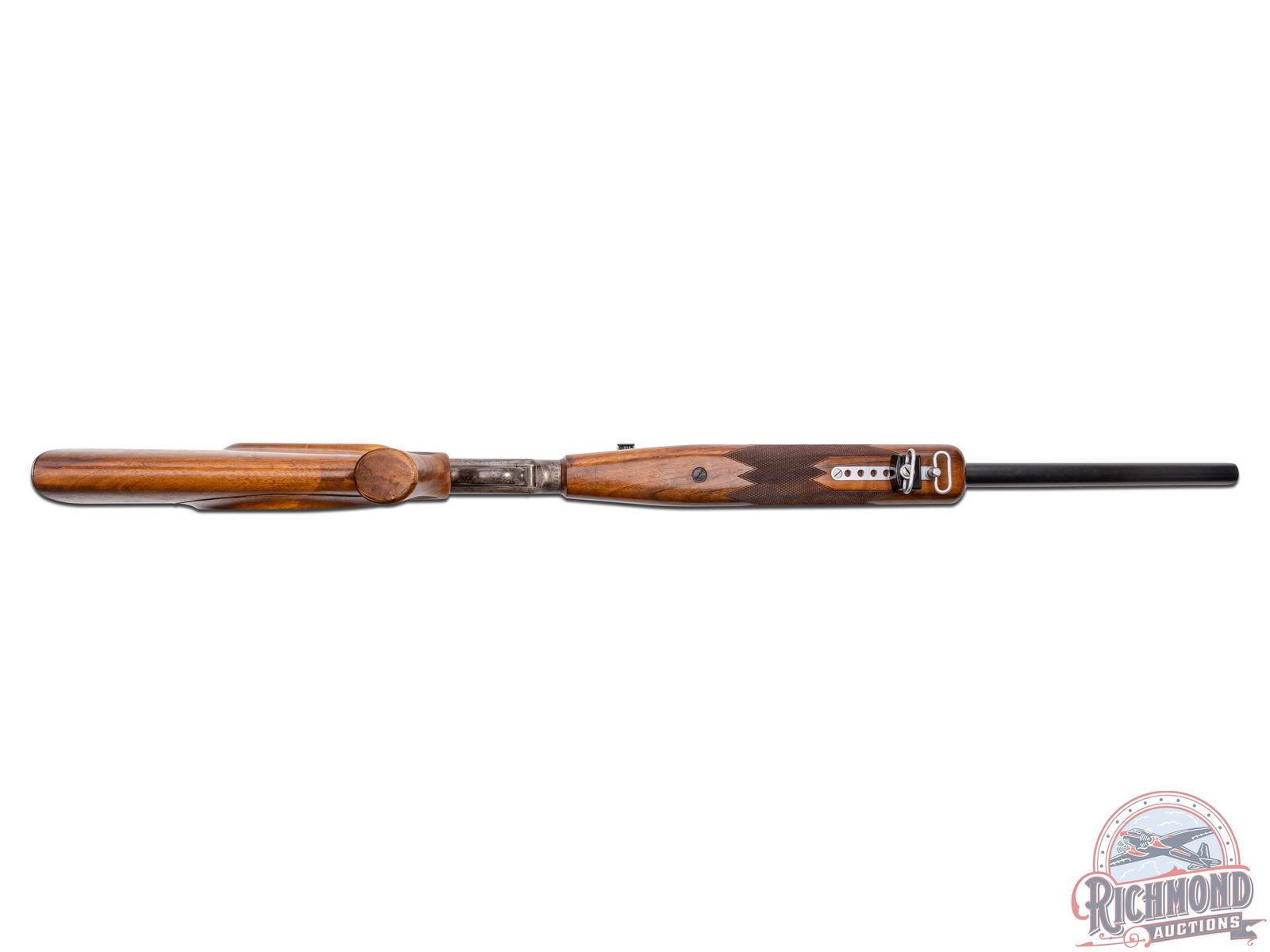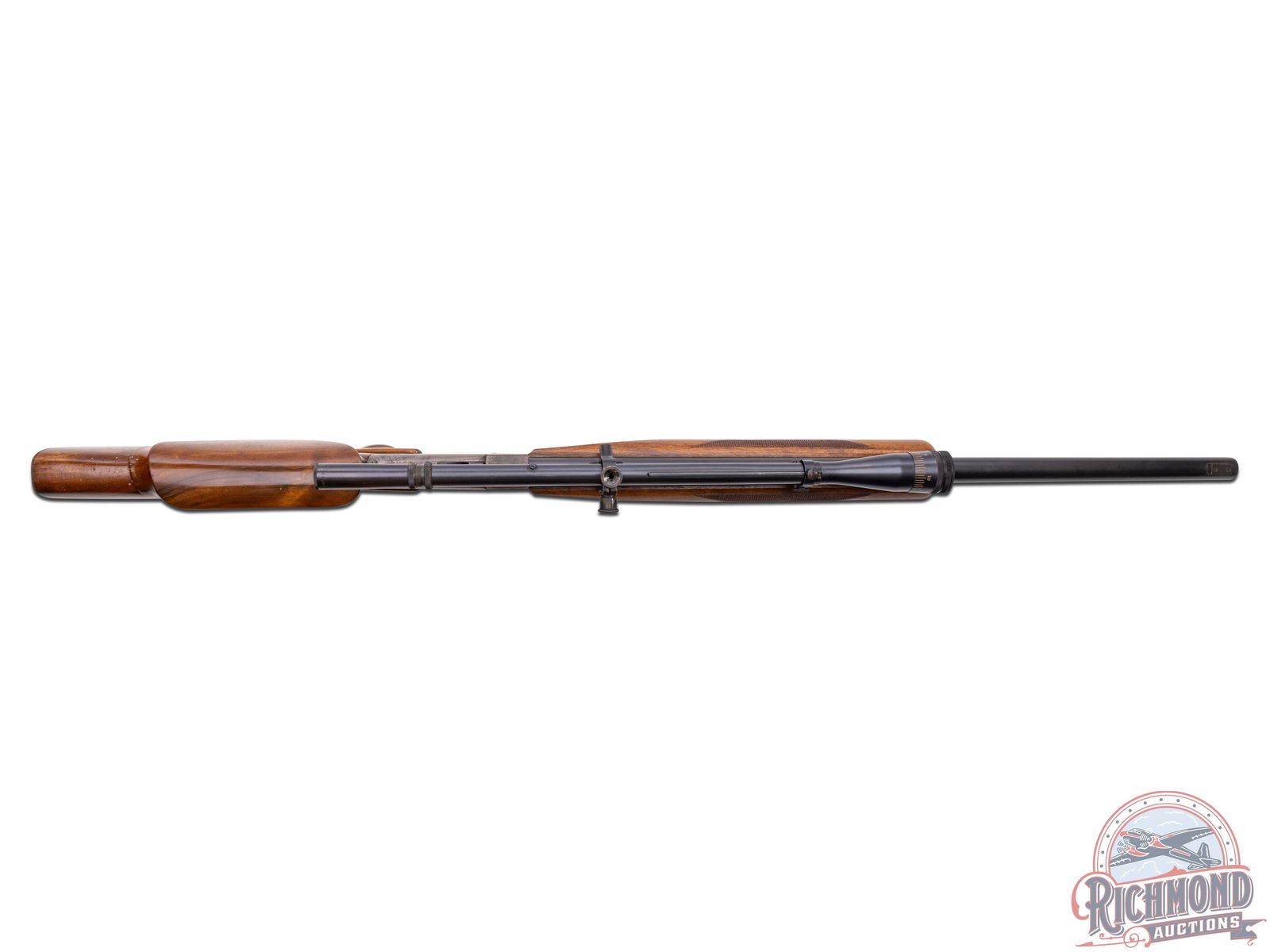 Made originally by J.M. Marlin Company, circa 1880. Rifle was customized and re-barreled by Arthur Hubalek, who worked circa 1930 in Brooklyn, New York. Hubalek was a Master Gunsmith known for his excellent shooting rimfire rifles. This rifle has a 29" blued target weight round barrel with Posa front sight base and Posa scope bases fitted Lyman 10x Super Target Spot with original caps. Barrel is marked "A. Hubalek/Special". Case-hardened Union Hill Ballard action with plain re-worked single trigger and checkered wood tipped opening lever. Custom walnut stock with over-the-comb rollover cheekpiece fitted with checkered steel marksman style butt plate. Walnut checkered marksman style swelled beavertail forearm with adjustable hand position sling mounts. J.T. Livengood Collection. CALIBER: 22 Rimfire. S/N: 29723. FFL STATUS: Antique.