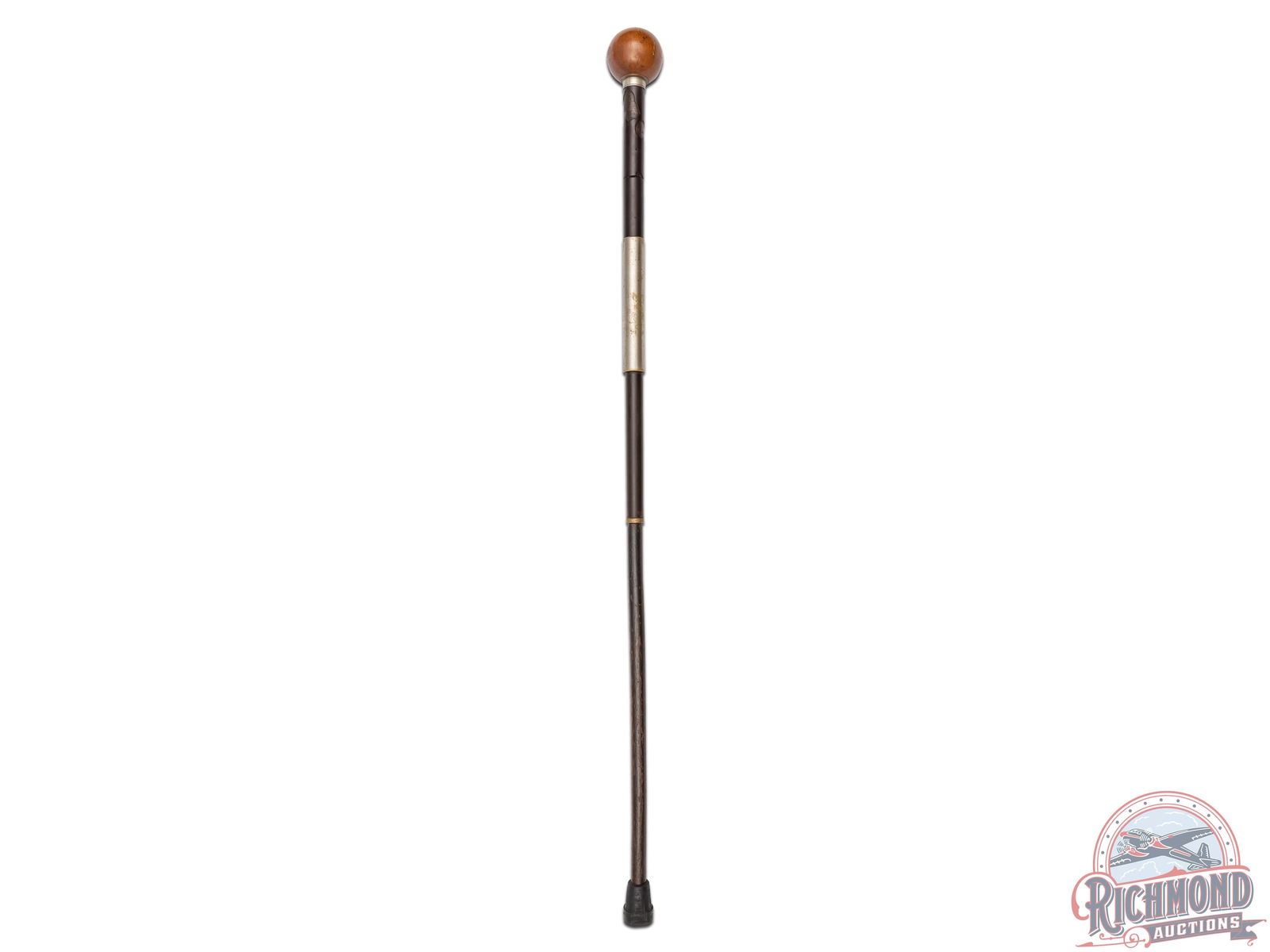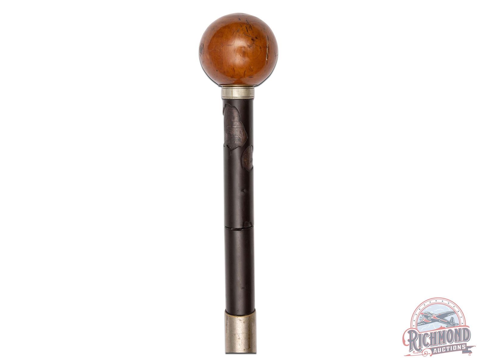 Made by unknown manufacturer, circa 1850 with Gutta Percha covered 50 caliber smooth bore barrel with sliding chamber operated by pulling hardwood ball of cane exposing a percussion cap nipple. Cane is fired by button on side with lower half of cane used as a ramrod. Cane measures 35-1/2" overall. CALIBER: 50. FFL STATUS: Antique.