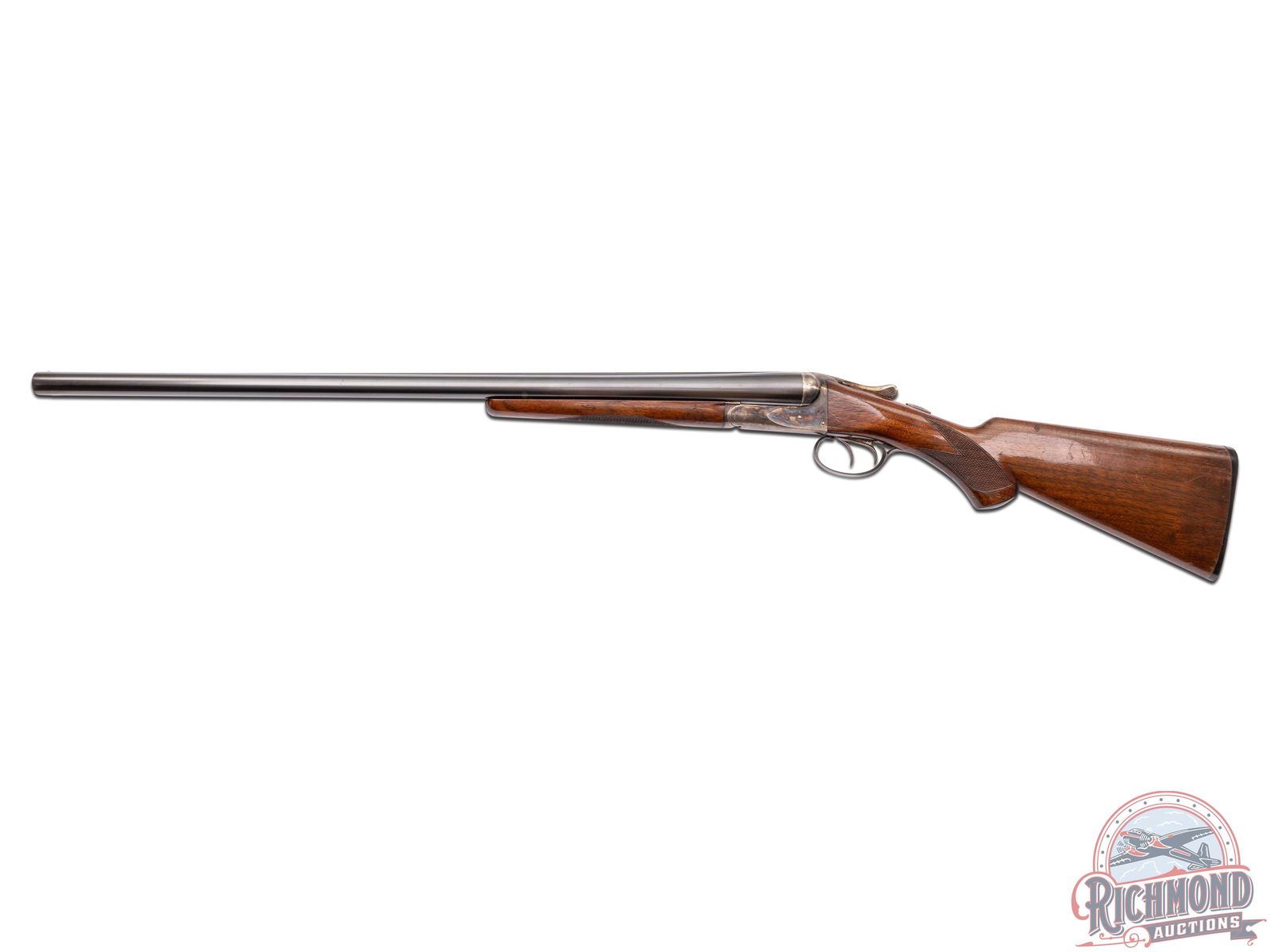 Made by Savage Arms in Utica, New York in 1940. Blued 26" Sterlingworth Compressed steel barrels with matted rib, bead sight, and extractors in 12 gauge with cylinder and modified chokes and 2-3/4" chambers. Case-hardened frame marked "Fox Sterlingworth" with automatic safety and double triggers. Factory checkered walnut pistol grip stock with hard rubber grip cap and butt plate. Gun has matching forearm with friction release. LOP: 14-1/4". DAC: 1-1/2". DAH: 2-1/4". CALIBER: 12 GA. S/N: 160638. FFL STATUS: Curio & Relic.