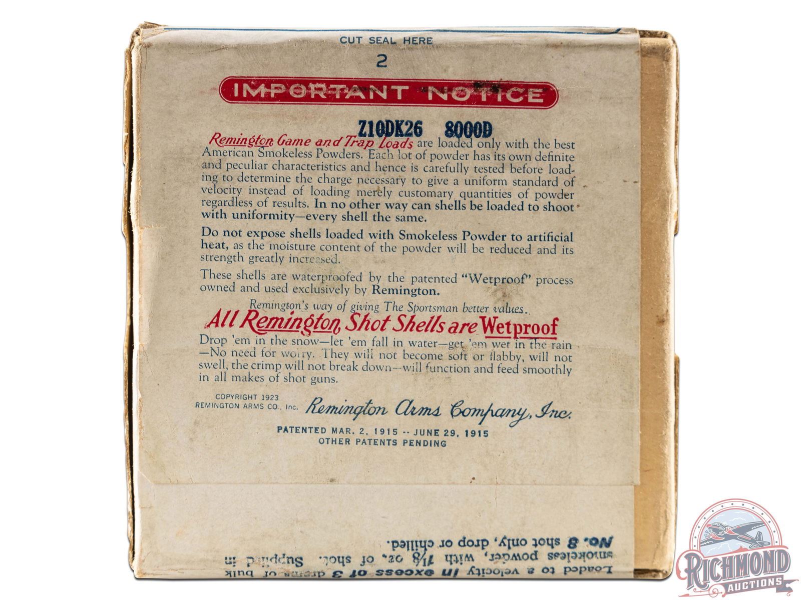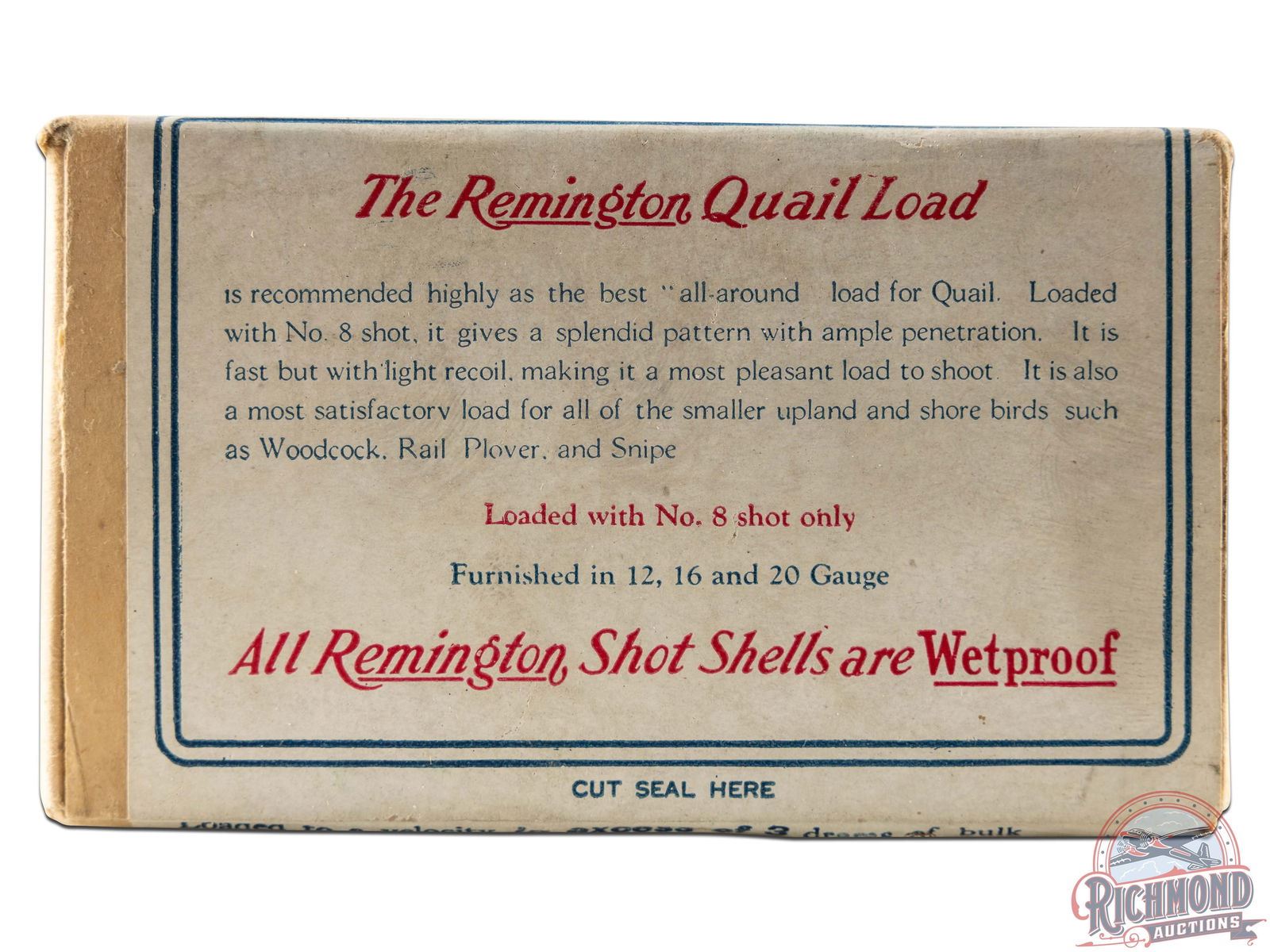 Lot 271 Factory Sealed Box Of Remington U.M.C. "Quail Load" Nitro Club Shotshells 12 GA