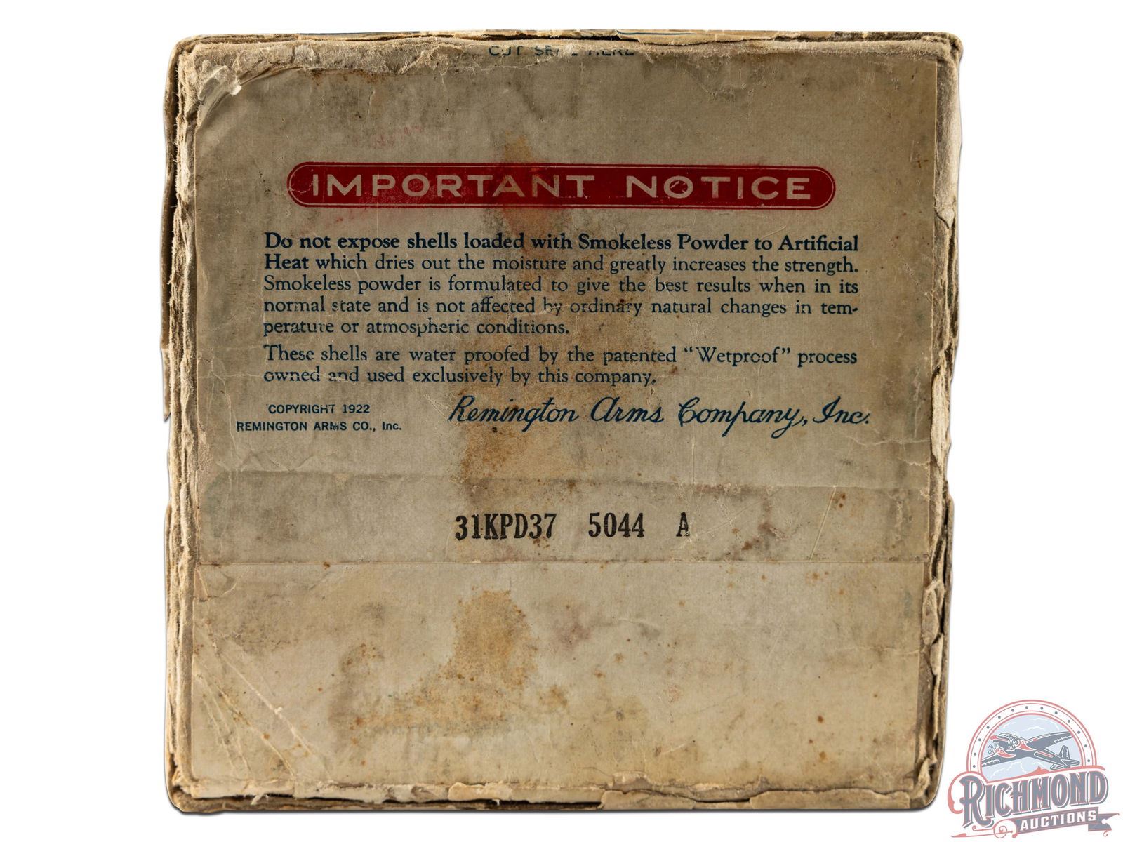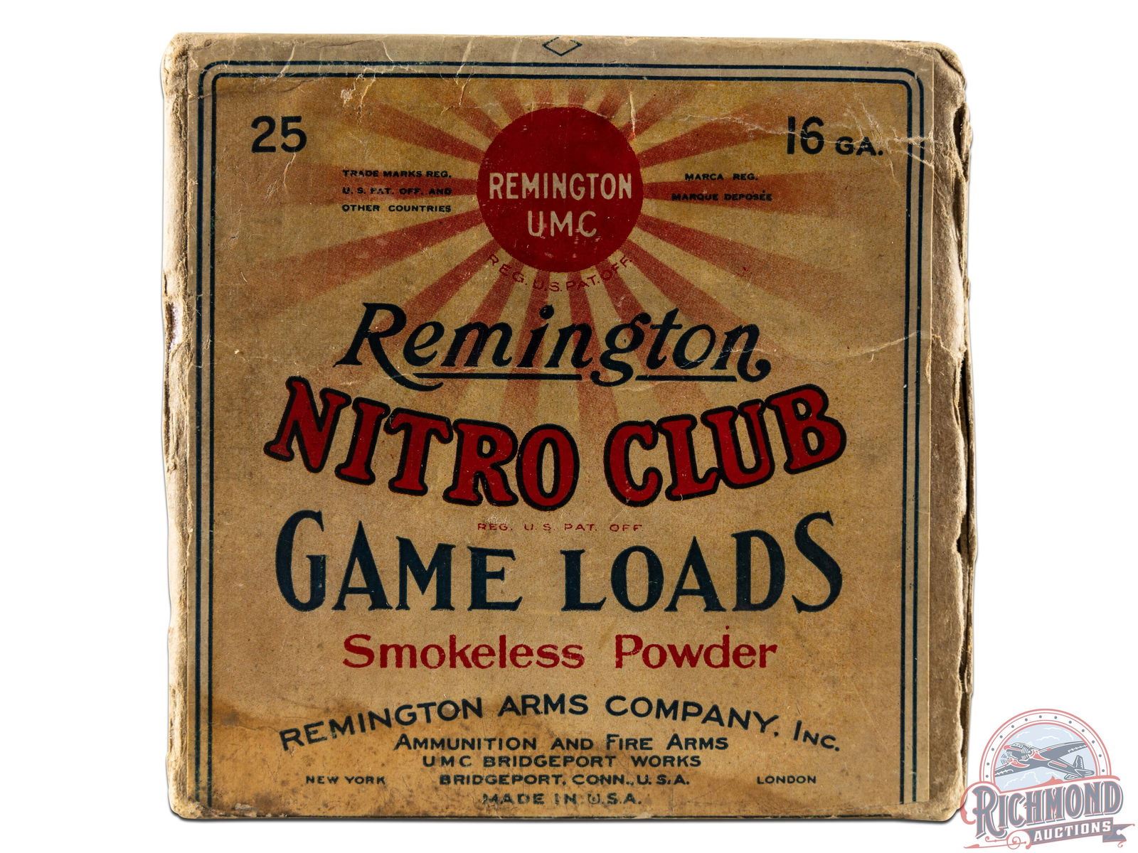 Lot 275 Box Only Of Remington U.M.C. "Snipe Load" Nitro Club Shotshells 16 GA