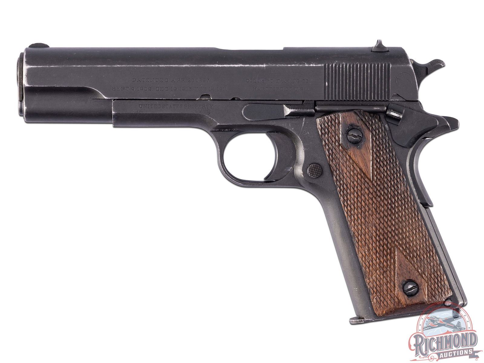 Lot 322 RARE Colt 1912 Navy US Property .45 ACP Semi-Auto Pistol with Archive Letter