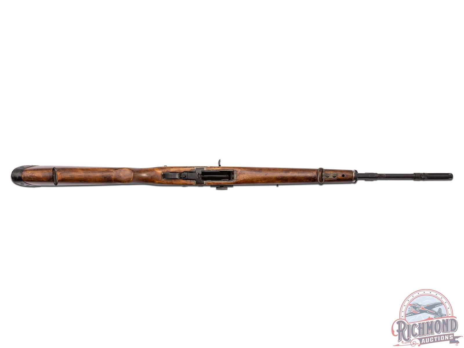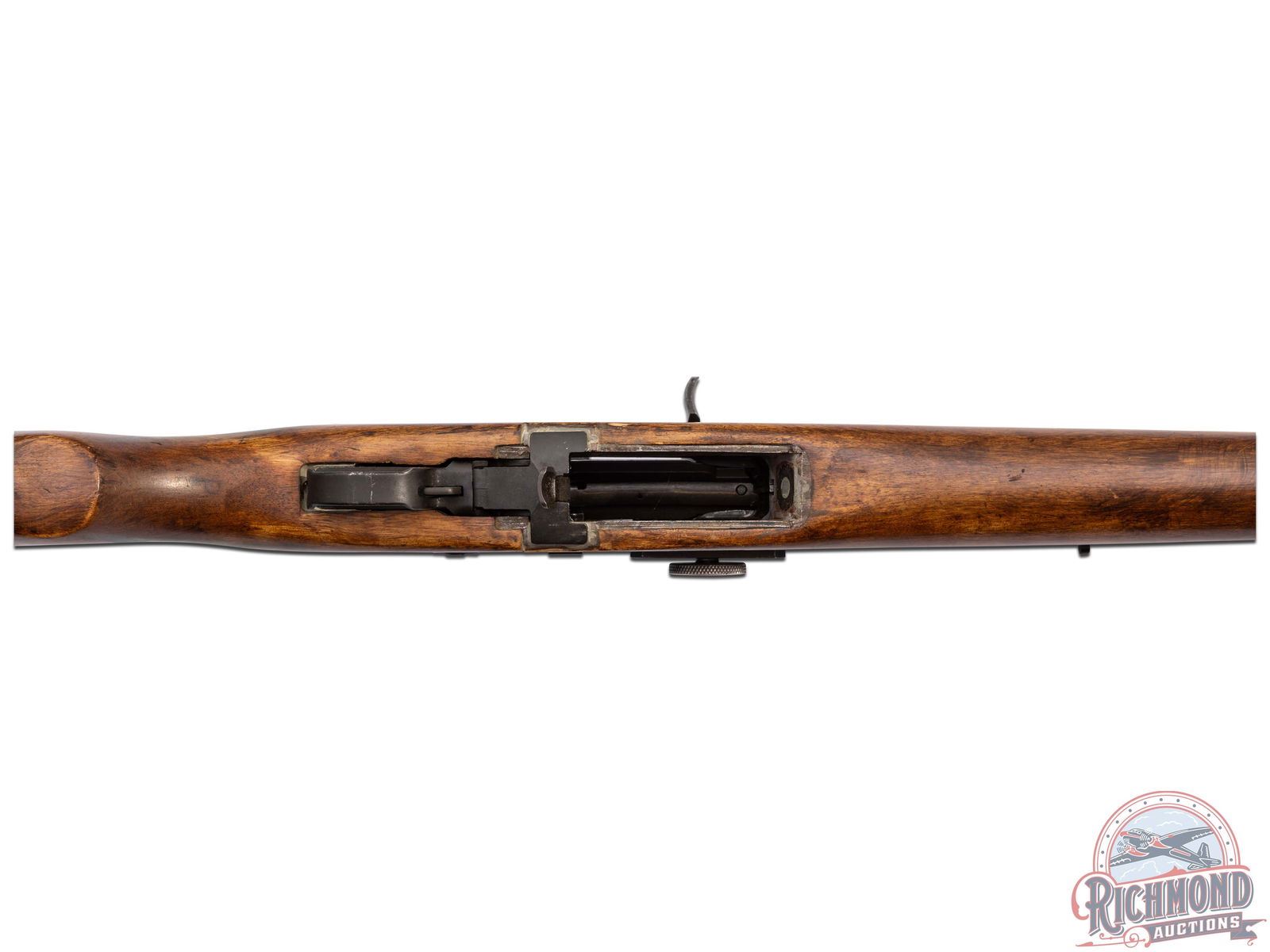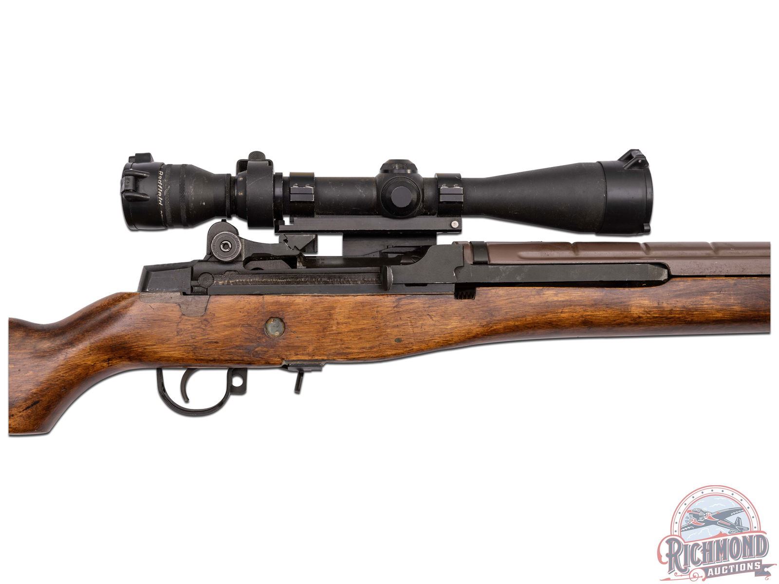 Made by Springfield Armory at Geneseo, Illinois on a circa 1980 action. 25" blued barrel including flash suppressor with "Geneseo, Ill." marking with standard sights and fitted with Redfield "AR Tel" 3-9x Duplex reticle scope. Steel frame with removed cut-off switch and "TRW" bolt. Springfield op-rod and trigger group with missing magazine. G.I. stock with "P" proofs, modified by unknown gunsmith or shooter with added recoil pad and fiber filling for accuracy. Standard plastic handguard. CALIBER: 7.26. S/N: 012487. FFL STATUS: Modern.