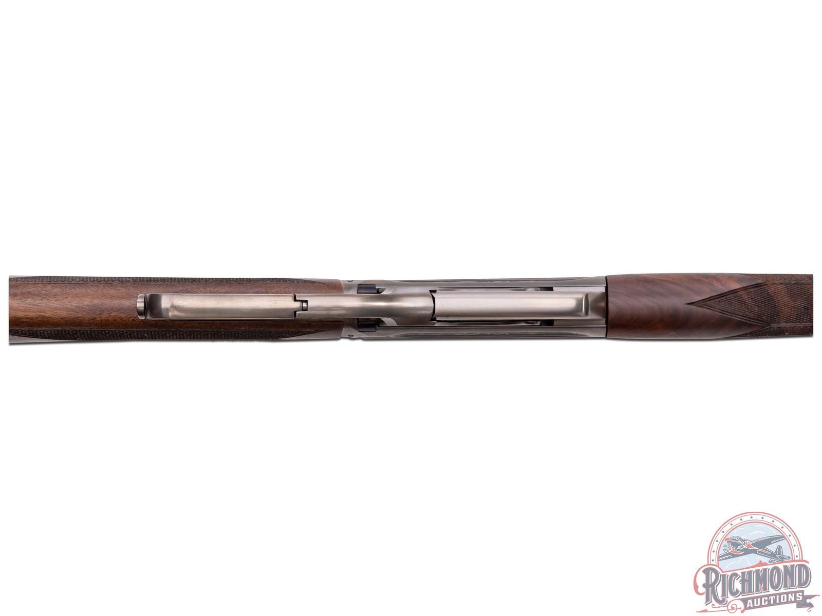 This gorgeous Winchester 1895 exclusive custom lever action was produced in 2023 to commemorate the 200th anniversary of the Texas Rangers. Serial number 57 of only 200 made! Features include a 22" blued barrel with standard markings, a gold bead on blade front sight and rear semi-buckhorn sight. Highly figured grade V walnut checkered stock and forearm with a Texas Rangers silver tone seal inlaid on the right side of the stock. The coin finished receiver and magazine features 90% engraving in a floral scroll motif. Right side has the Texas state inlaid in gold with the Texas state flag engraved on the magazine. The left side has a gold inlaid banner engraved "TEXAS RANGERS / 200TH ANNIVERSARY 1823-2023" and gold inlaid Texas Rangers seal, with cowboy silhouette engraved on the magazine. Also features a tang safety, a drilled and tapped receiver, and a 4 round capacity magazine. Comes in the original factory box with sleeve, Certificate of Authenticity, factory paperwork and cable lock. CALIBER: 30-06 SPRG. S/N: TXRNGC0057. FFL STATUS: Modern.