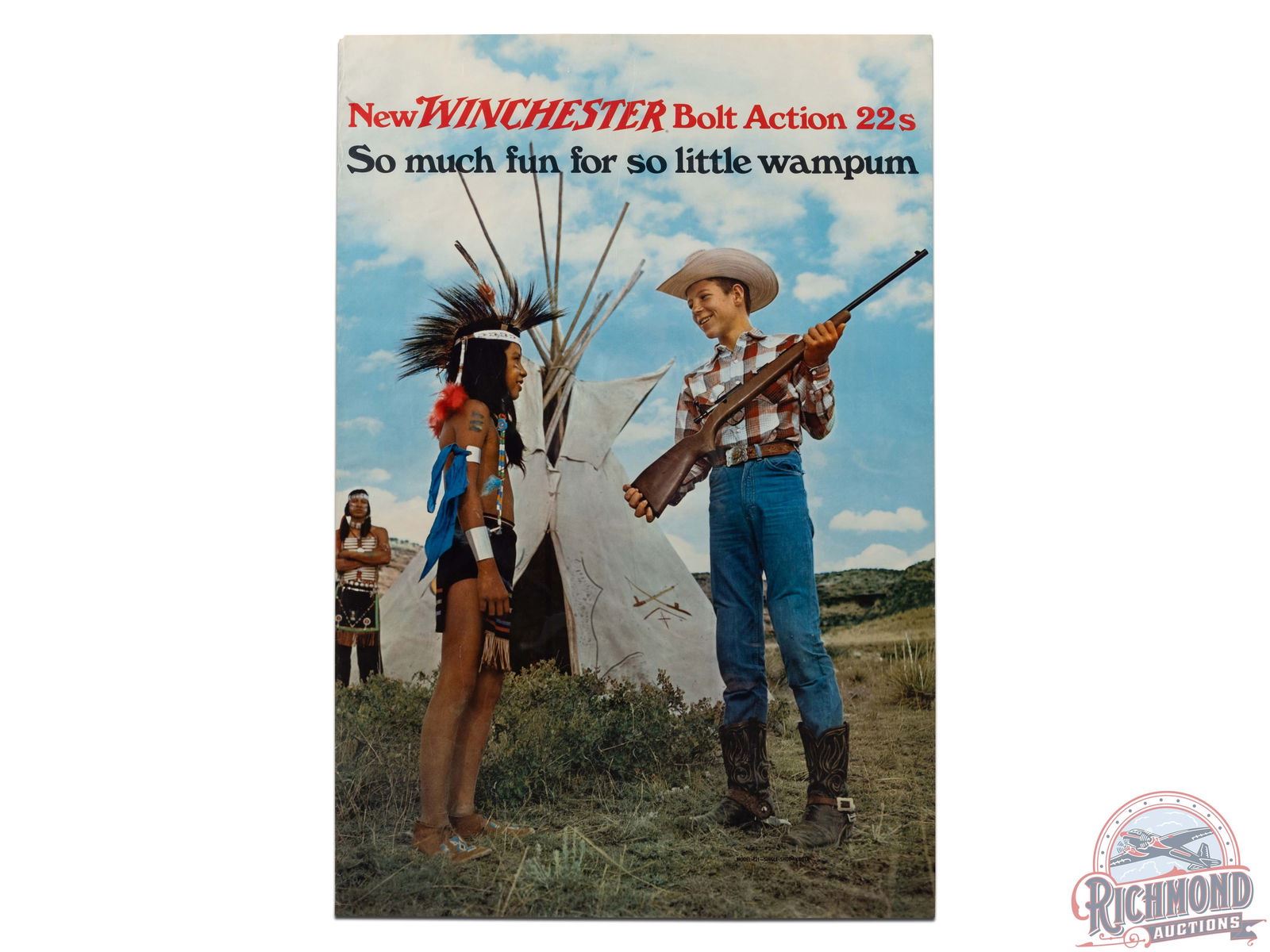 Lot 358 Large 1960's Winchester Bolt Action .22's Model 121 Poster w/ Native American & Young Cowboy