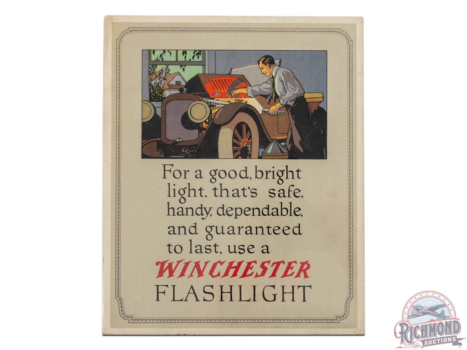 Lot 416 1920's Winchester Flashlights Easel Back Counter Sign