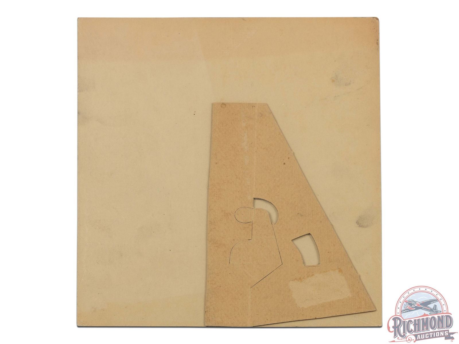 Easel back cardboard advertising sign with good color and graphics. Some mild discoloration but clear graphics and legible text throughout. Surface, edges, and corners present with some general wear age and storage wear. Shrink wrapped to an acrylic panel. 10.5" H x 8.5" W.