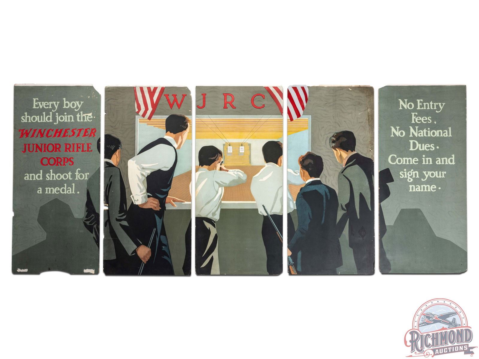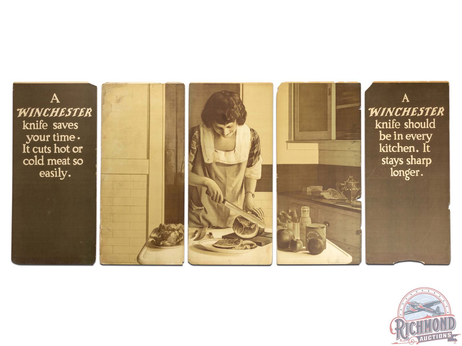 Lot 422 Complete 1921 "Winchester Junior Rifle Corps at Shooting Gallery" & "Kitchen Knife" 5 Panel Display