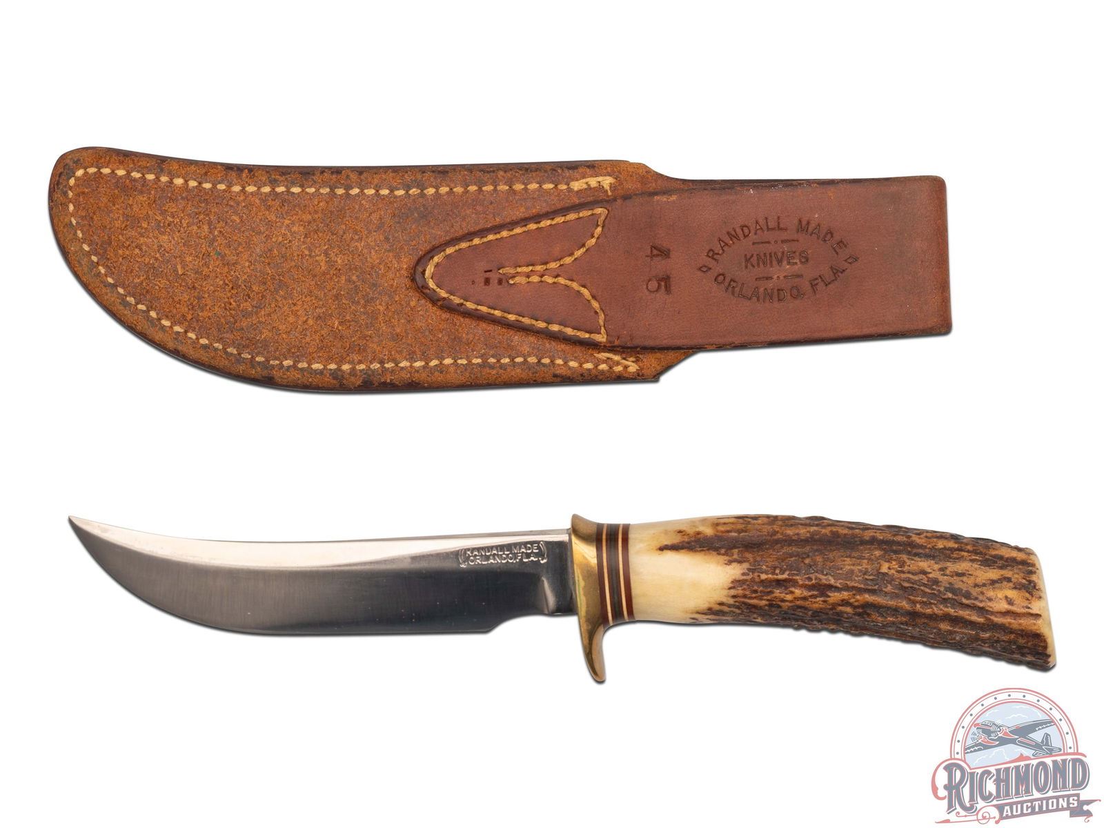 Lot 435 Randall Made Model 4 Hunter Knife 5" Blade with Stag Handle and Leather Sheath