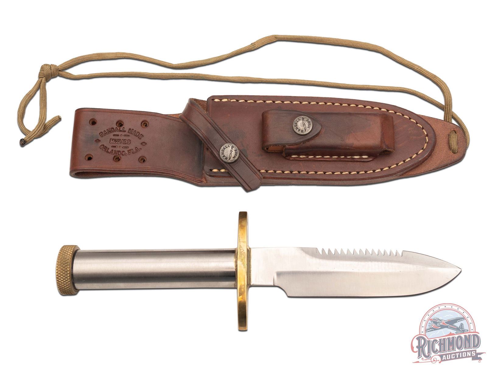Lot 442 Randall Made Knife Model 18 Attack Survival 5-1/2" Blade with Sawtooth Back and Leather Sheath