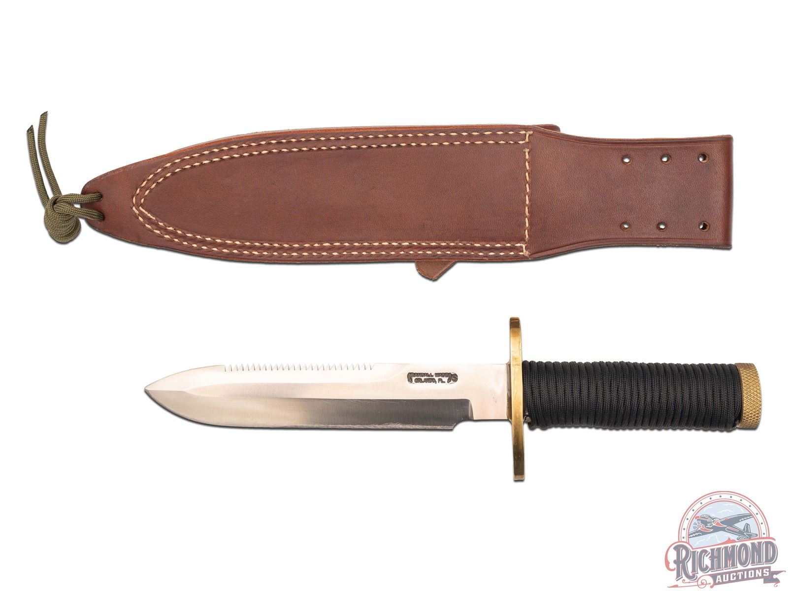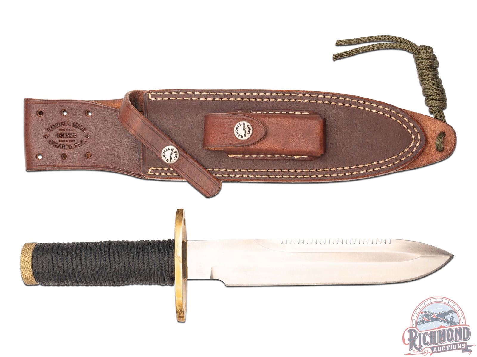 Lot 456 Randall Made Knife Model 18 Attack Survival 7-1/2" Blade with Sawtooth Back and Leather Sheath