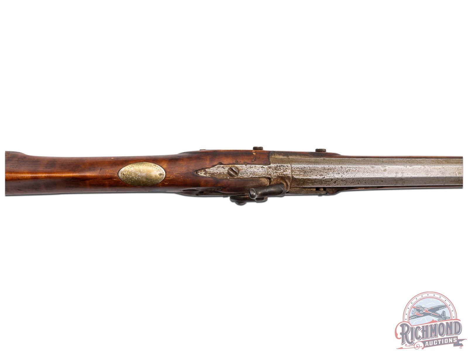 Overall fair with metal having been cleaned. Wood has been cleaned and is missing 4" section near muzzle along with nosecap. Stock is cracked through back at trigger and is missing wood around lock. Pitted bore with mechanics needing attention.