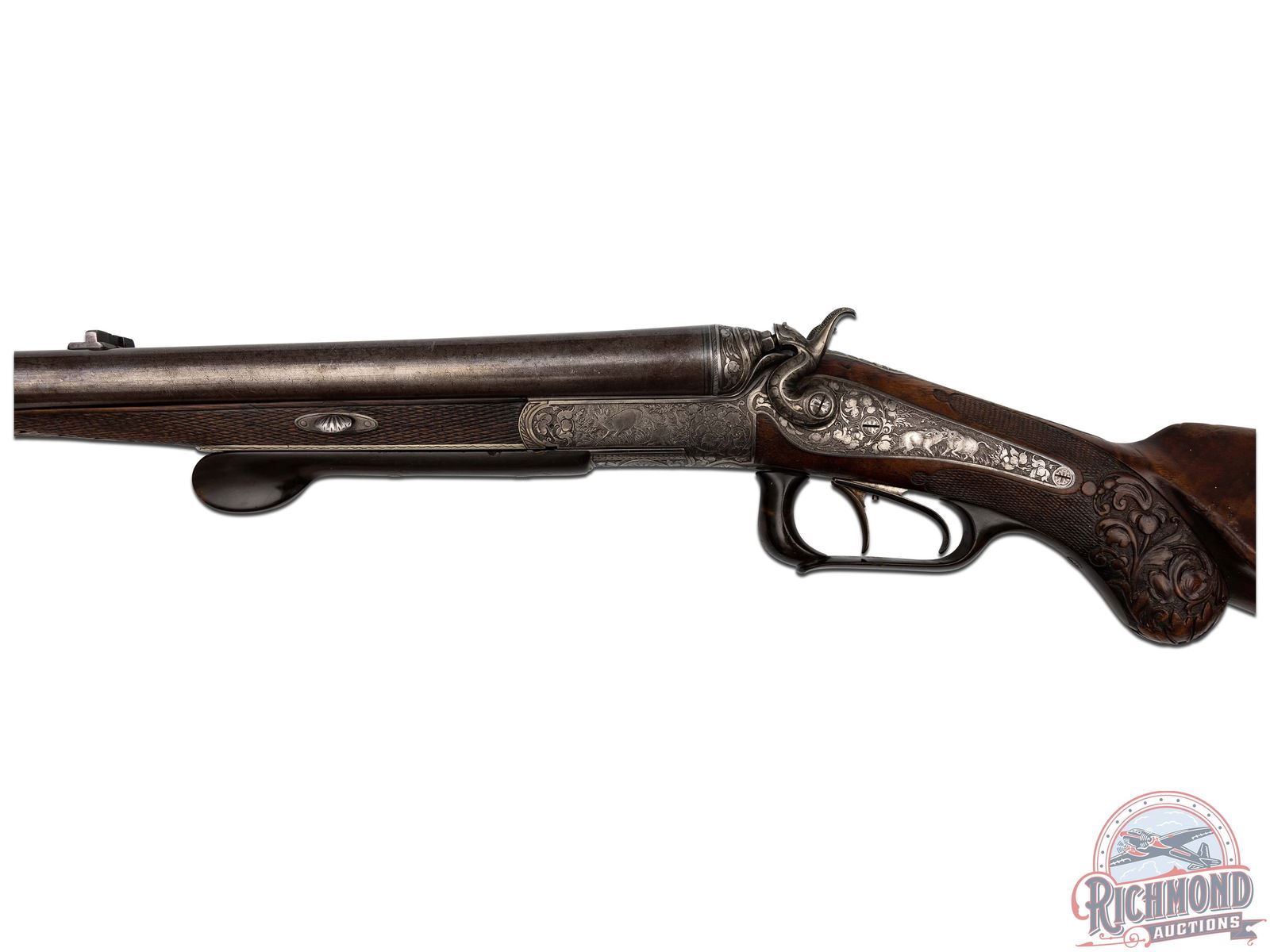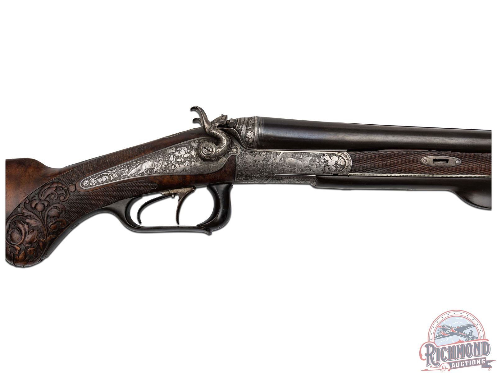 Lot 511 Antique Game Scene Engraved A. Korinski Side By Side Cape Gun