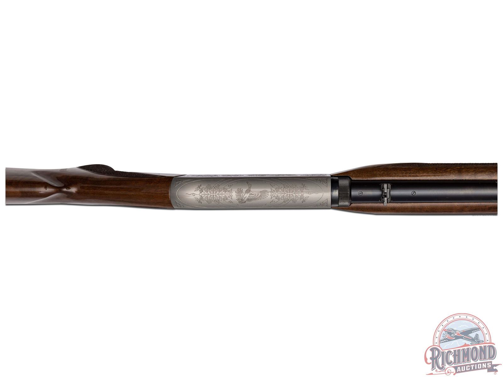 Manufactured in 2002. Blued 22" barrel with hunting sights and factory drilled for scope. Grayed takedown receiver with engraved squirrel and prairie dog scenes. Gold plate trigger with push button safety and tubular magazine. Walnut checkered factory stocks with blued serrated butt plate. Includes the original factory box. CALIBER: 22 SHORT. S/N: 01277MY212. FFL STATUS: Modern.