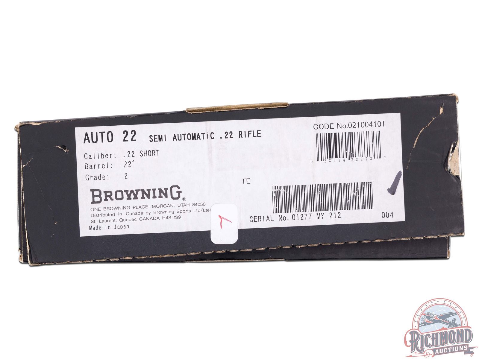 Lot 515 Browning SA Grade II Rifle & Original Box In .22 Short Caliber