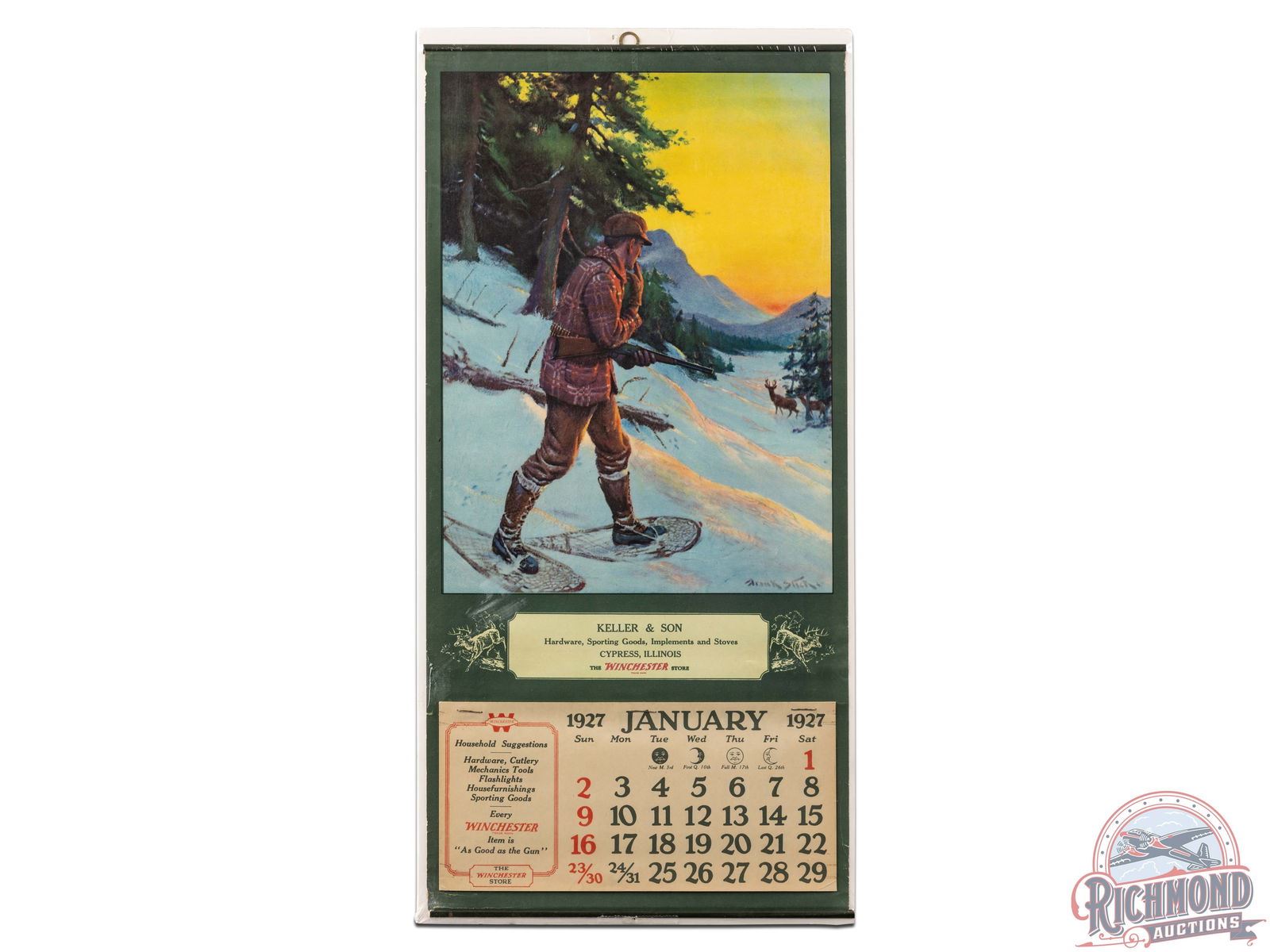 Lot 541 1927 Winchester Store Calendar Keller & Son, Cypress, Illinois w/ Scene by F. Stick