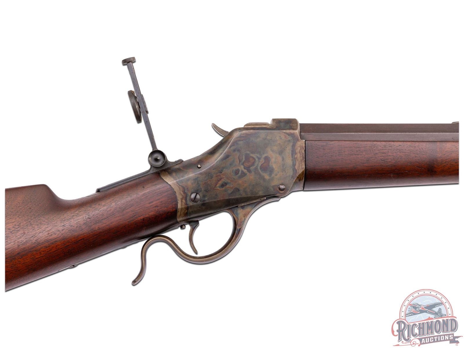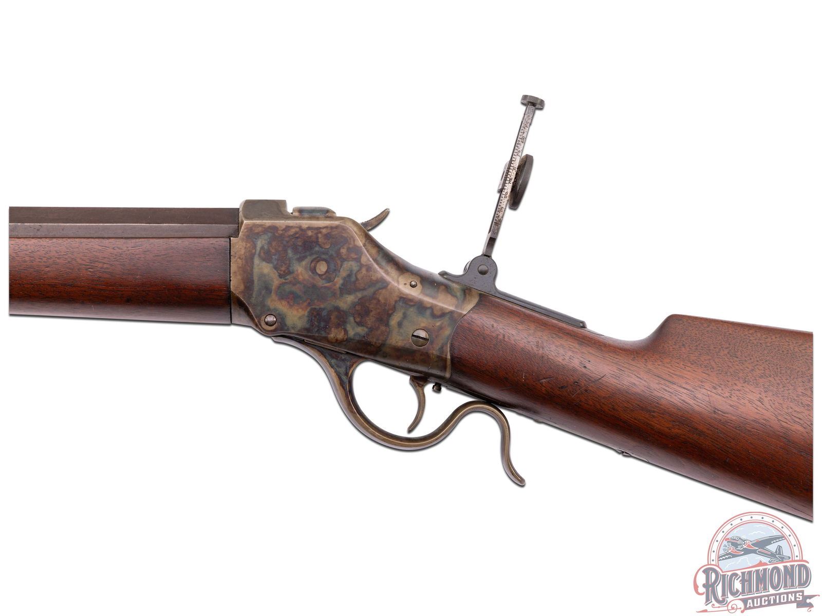 85% original barrel blue fading to plum with light speckling. 95% vivid case colors with light edge wear. 90% original varnish with light handling dings. Bright bore with crisp mechanics.