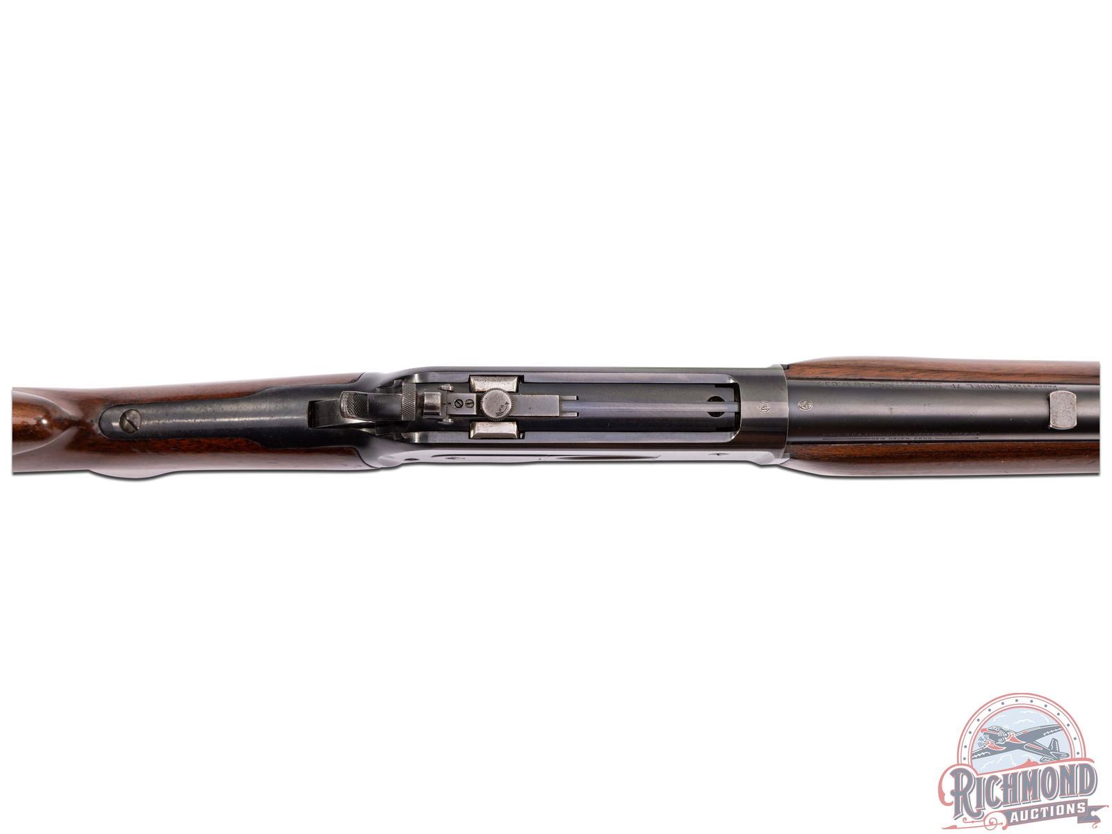 Retains 90% original finish with most wear on the high edges, and loading gate plate. Stock and forearm show some light dings and scuffs, most notably near the toe of the stock. Nice bore and good mechanics.