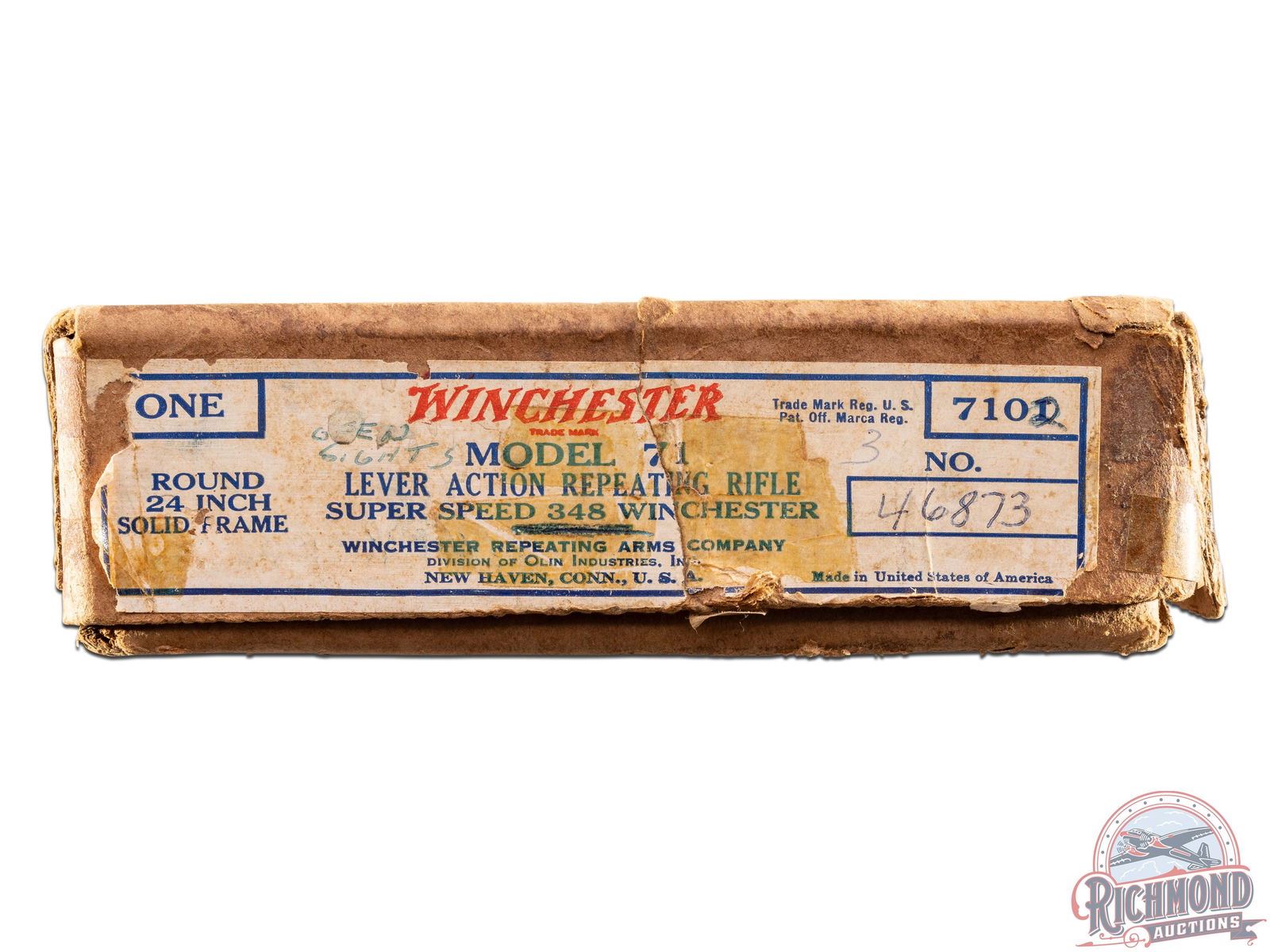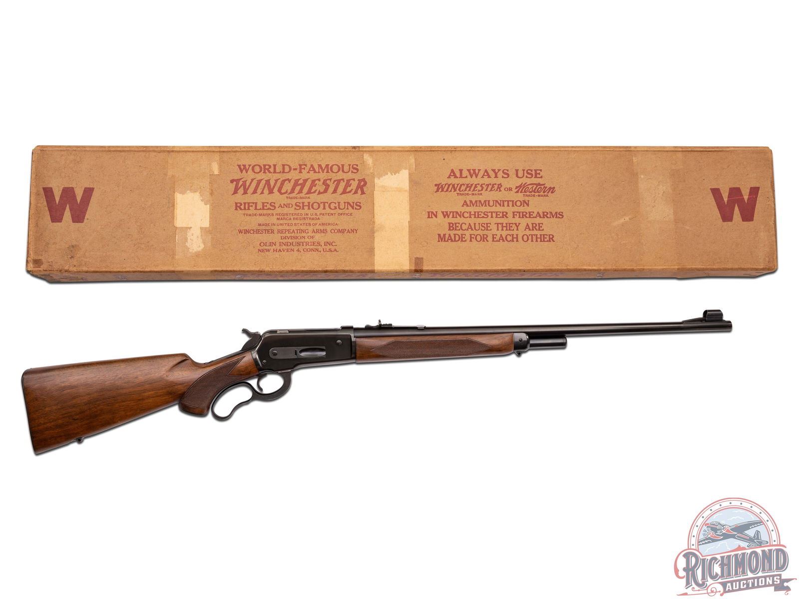 Lot 564 Immaculate Pre-64 Winchester Model 71 Deluxe .348 WCF Lever Action Rifle in Original Box