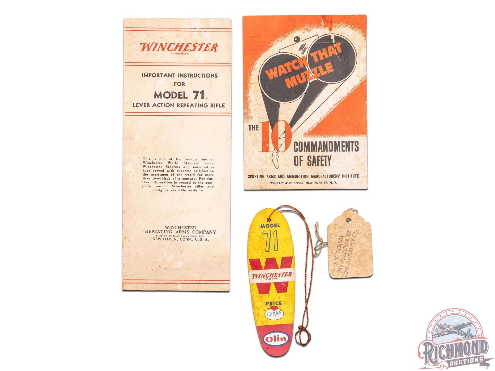 Retains 98% original finish with only faint handling marks. Stock and forearm show only minor handling wear and a small splinter at the toe near the butt plate. Still has cosmoline in areas and does not appear to have been actioned or fired, therefore it has not been tested. Box and paperwork show typical wear from age and storage.