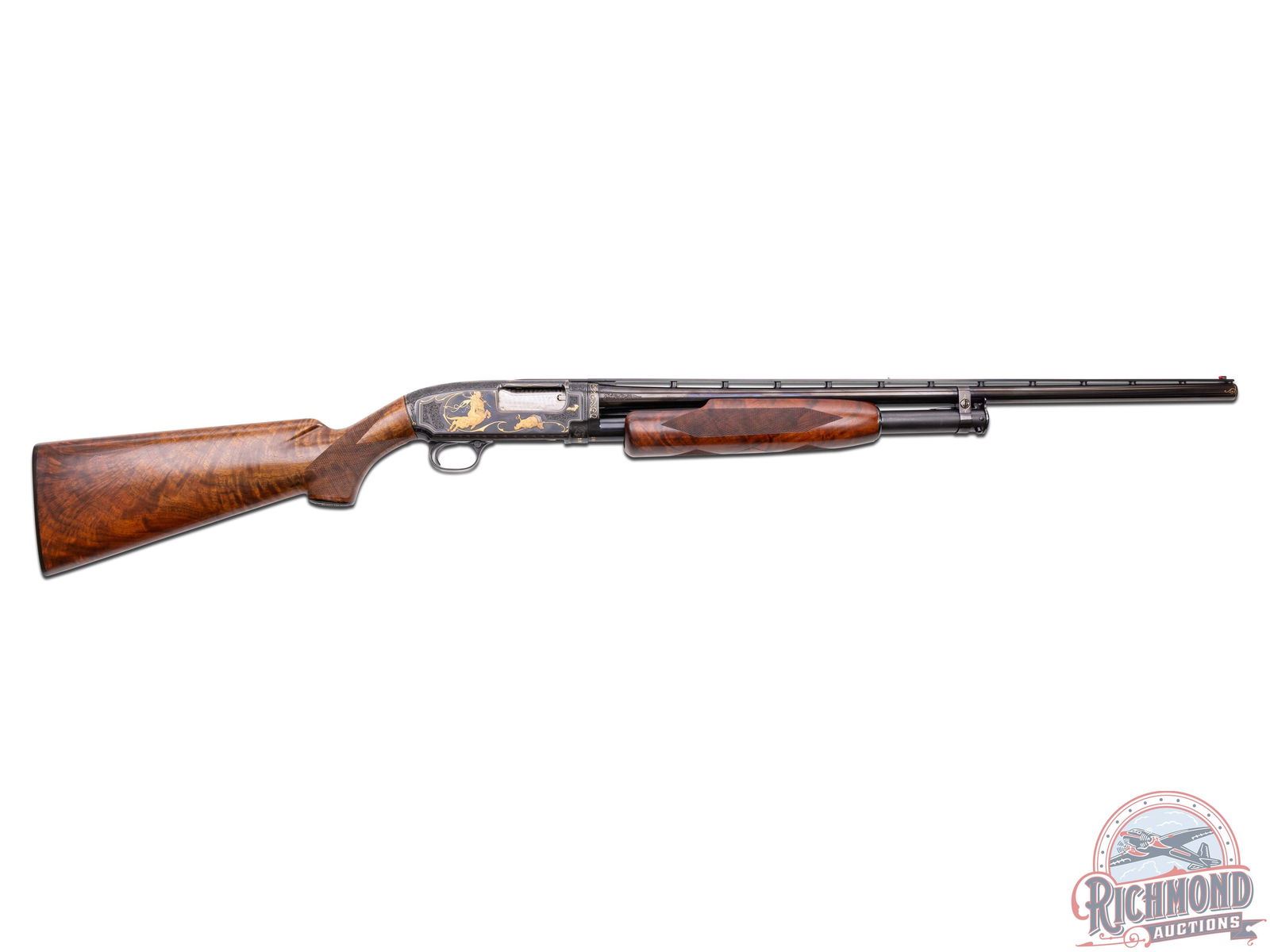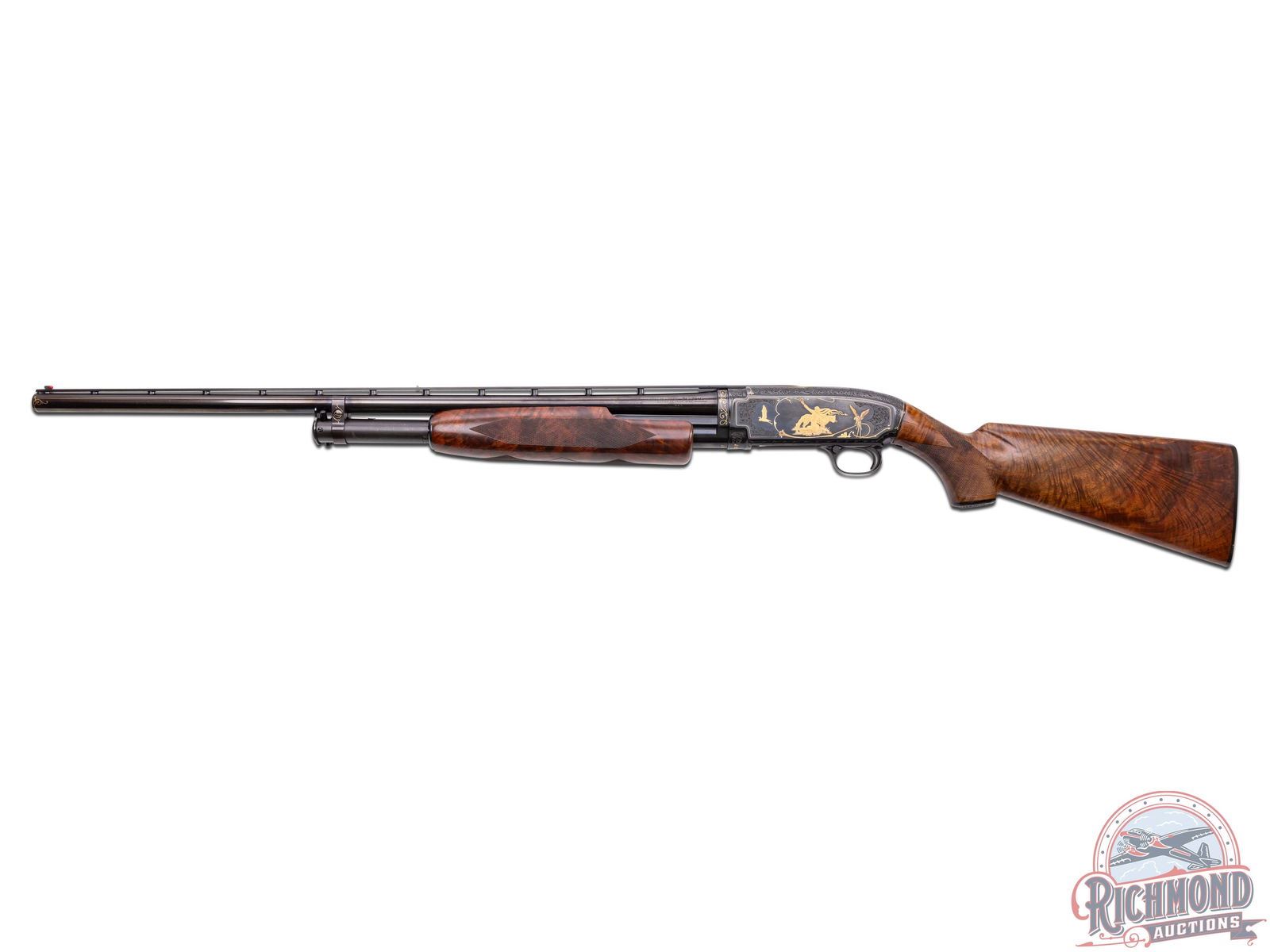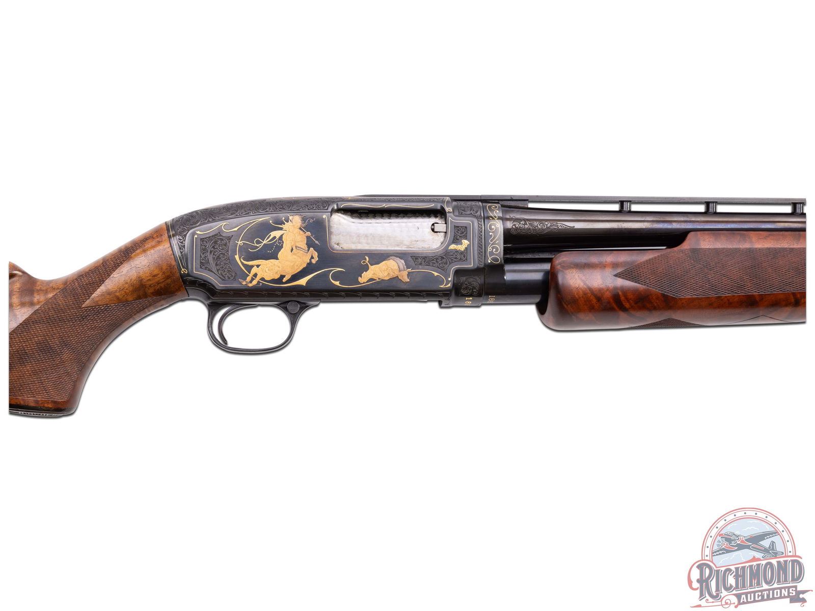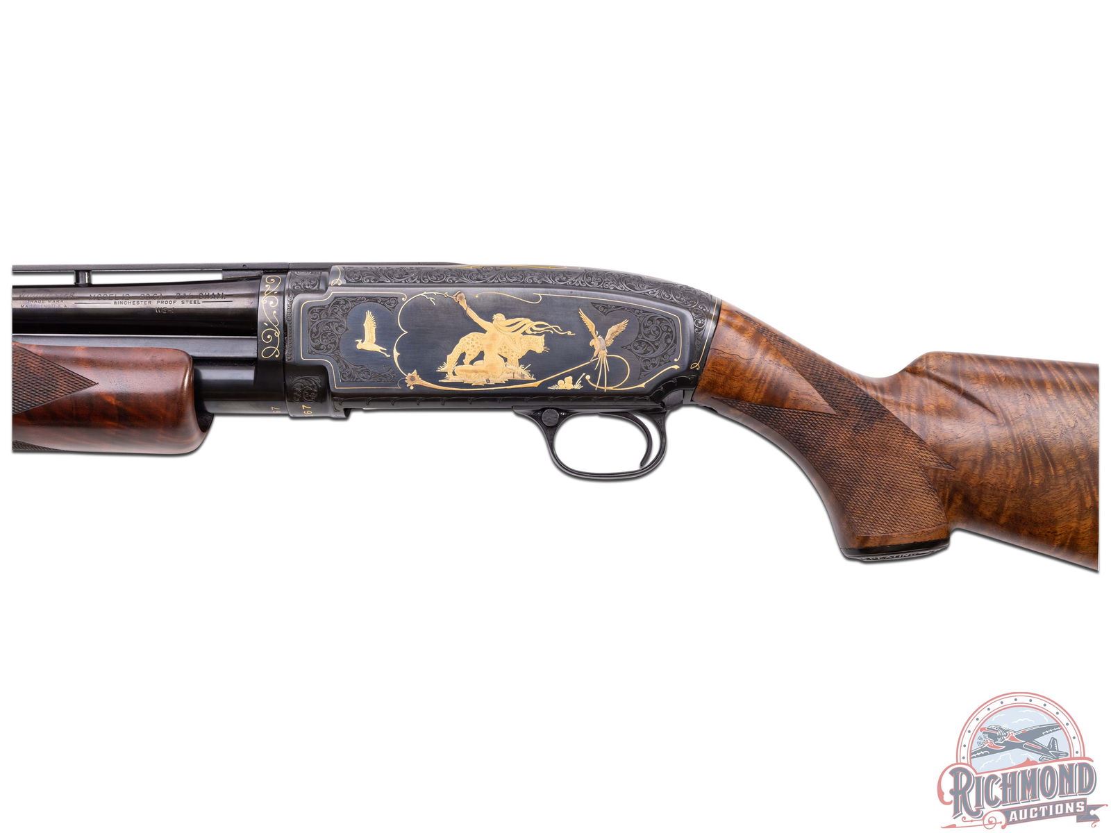 Lot 608 Unique Custom 1961 Winchester Model 12 Deluxe 20 GA Shotgun Engraved & Gold Inlaid by M.Courant