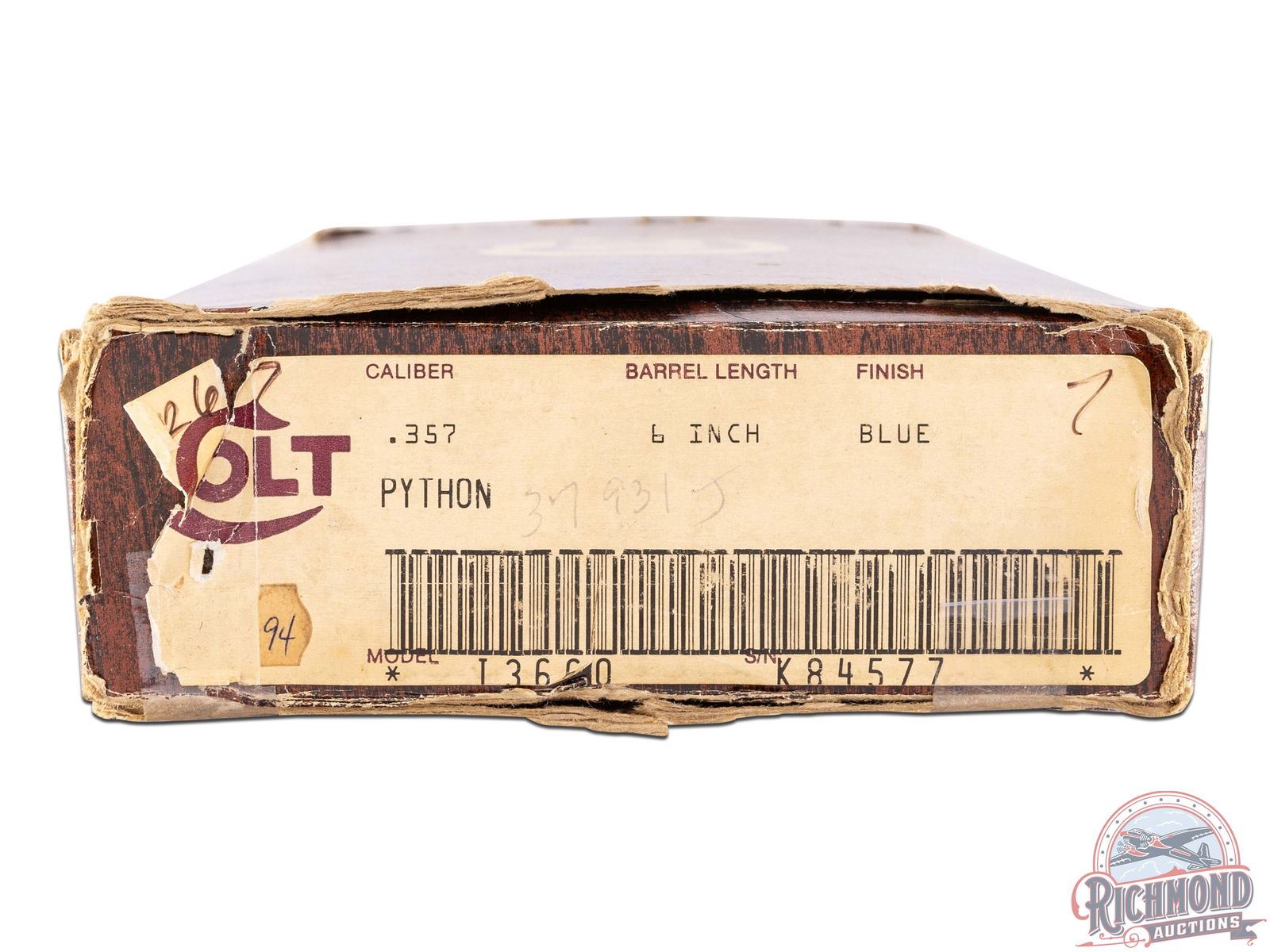 Lot 626 1982 Stunning Colt Python .357 Magnum Double Acton Revolver 6" Blued in Original Box
