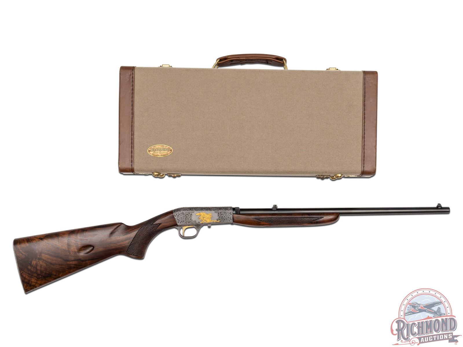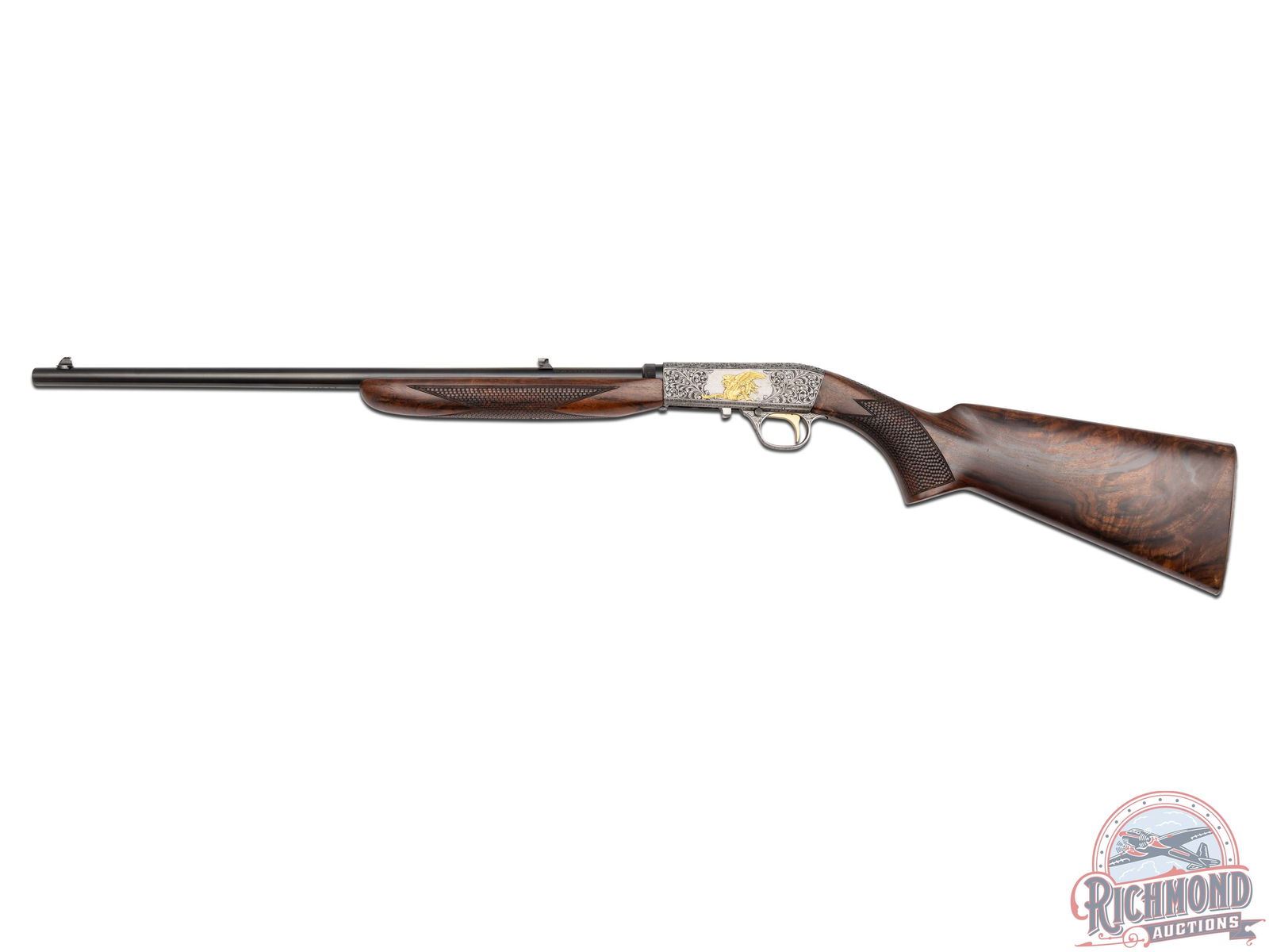 Lot 677 Stunning Browning Belgium SA-22 .22LR Semi-Auto Rifle Engraved & Gold Inlaid by Master Angelo Bee