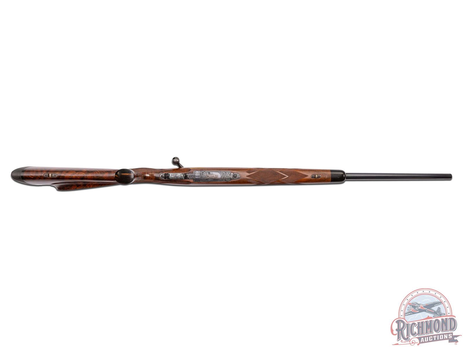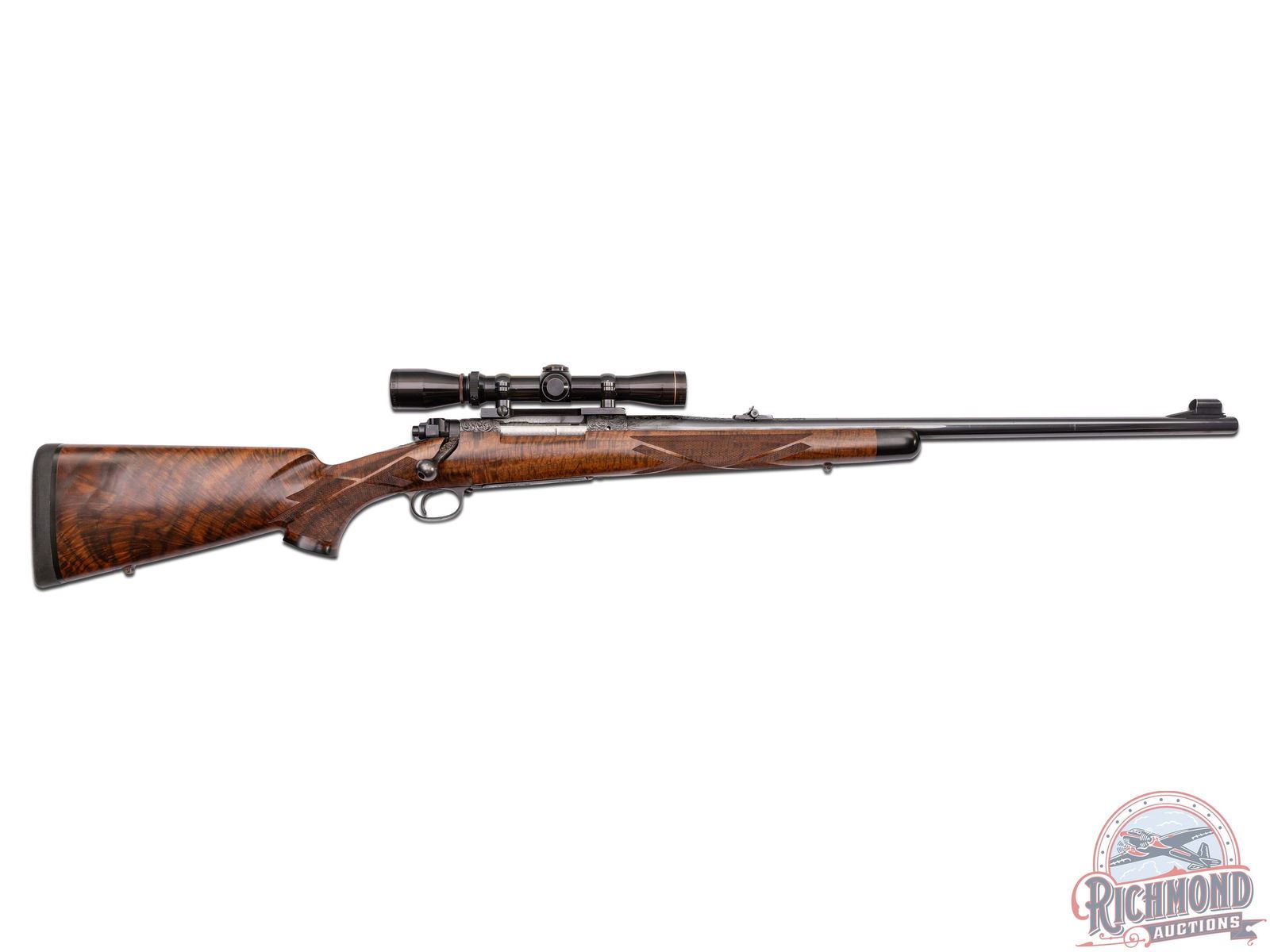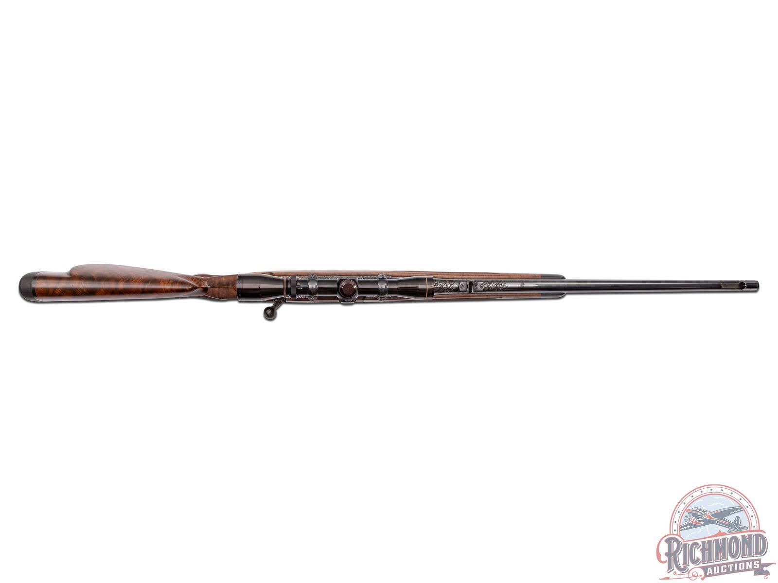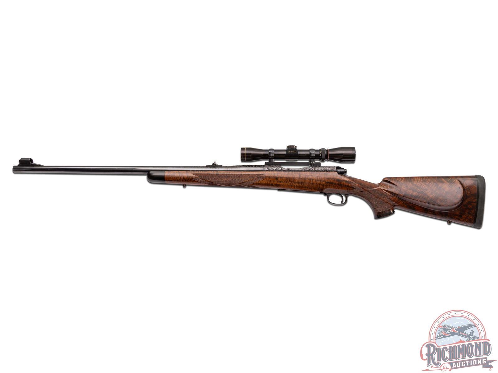 Lot 687 1958 Custom Engraved Winchester 70 Super Grade .375 H&H Mag Bolt Action Rifle w/ Leupold Scope
