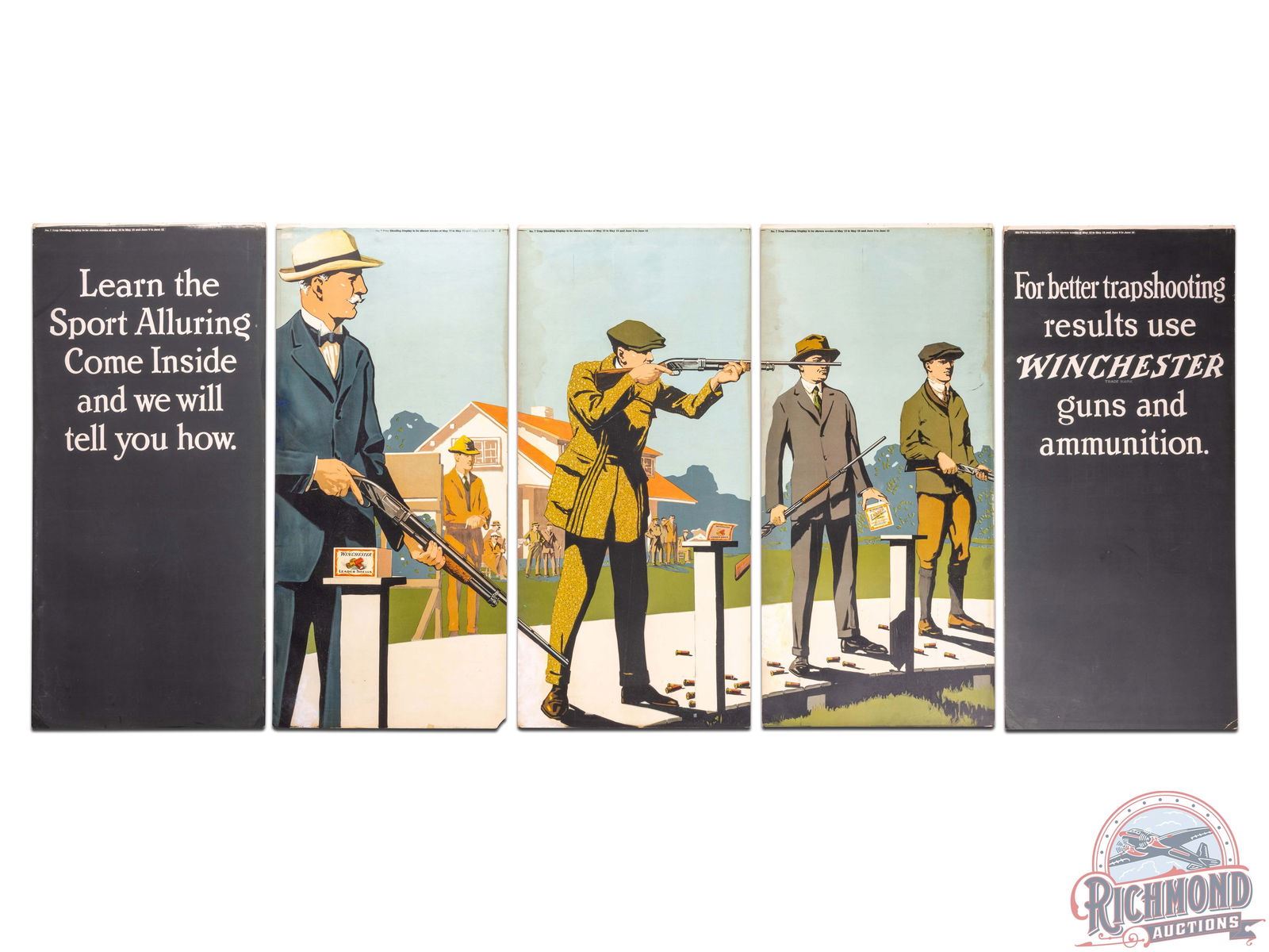Lot 707 Complete 1921 Winchester "Better Trapshooting" & "A Handy Light" 5 Panel Display Sign