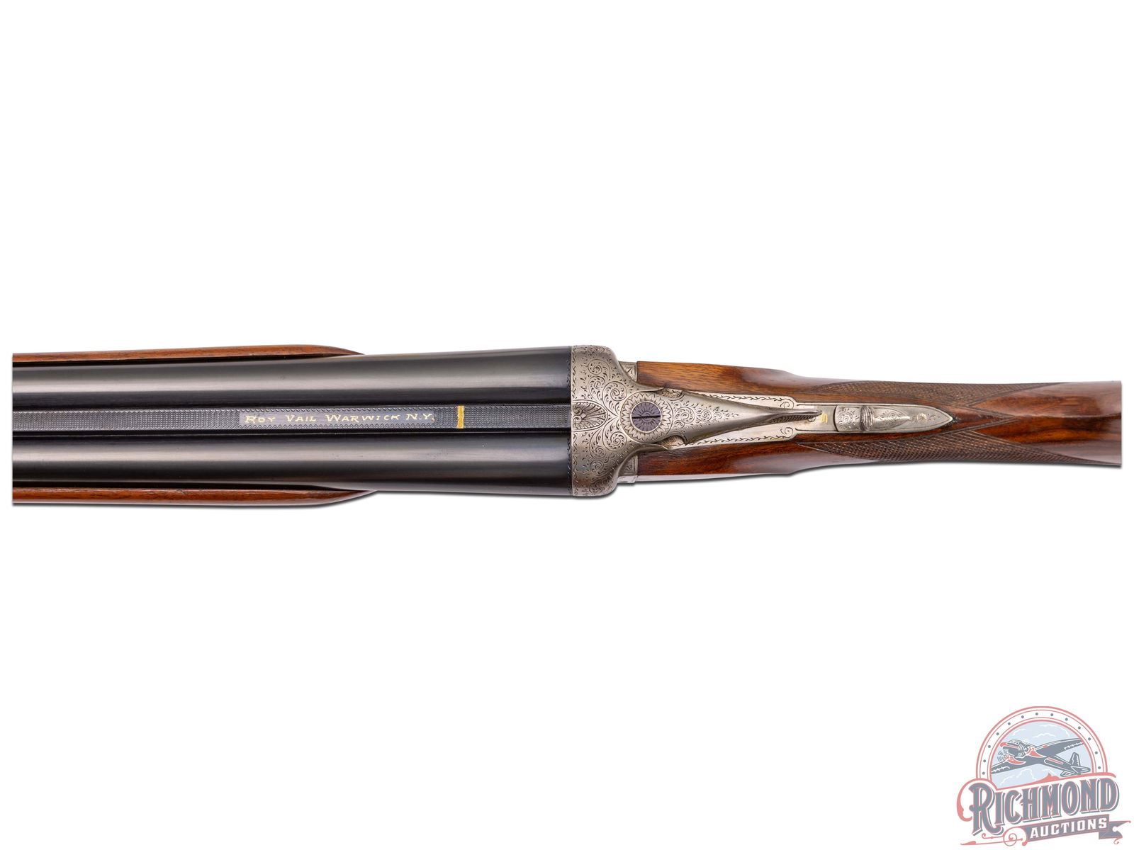 Lot 715 Roy Vail Gold Inlaid and Engraved Side by Side 20 Gauge Shotgun