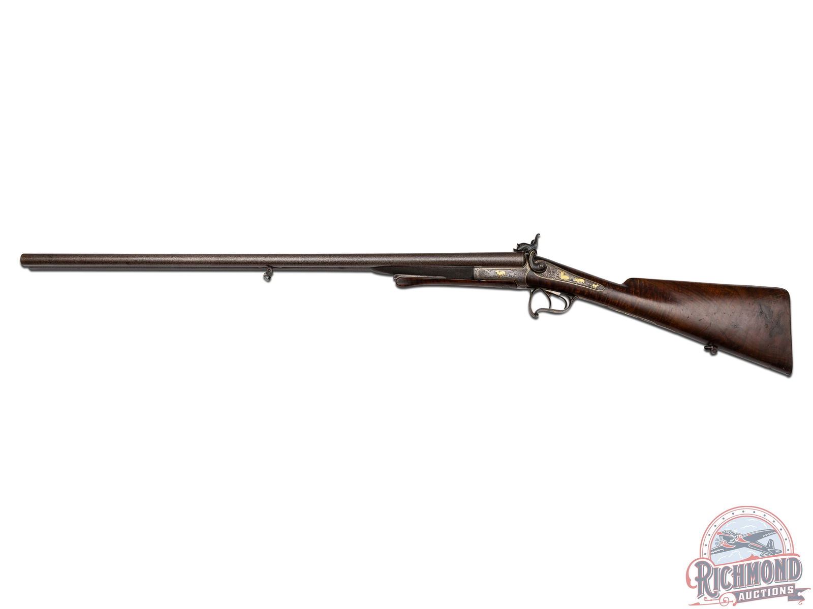Lot 716 Antique Gold Inlaid Vivario & Cali Face Belgium Pinfire SxS Double Barrel Shotgun
