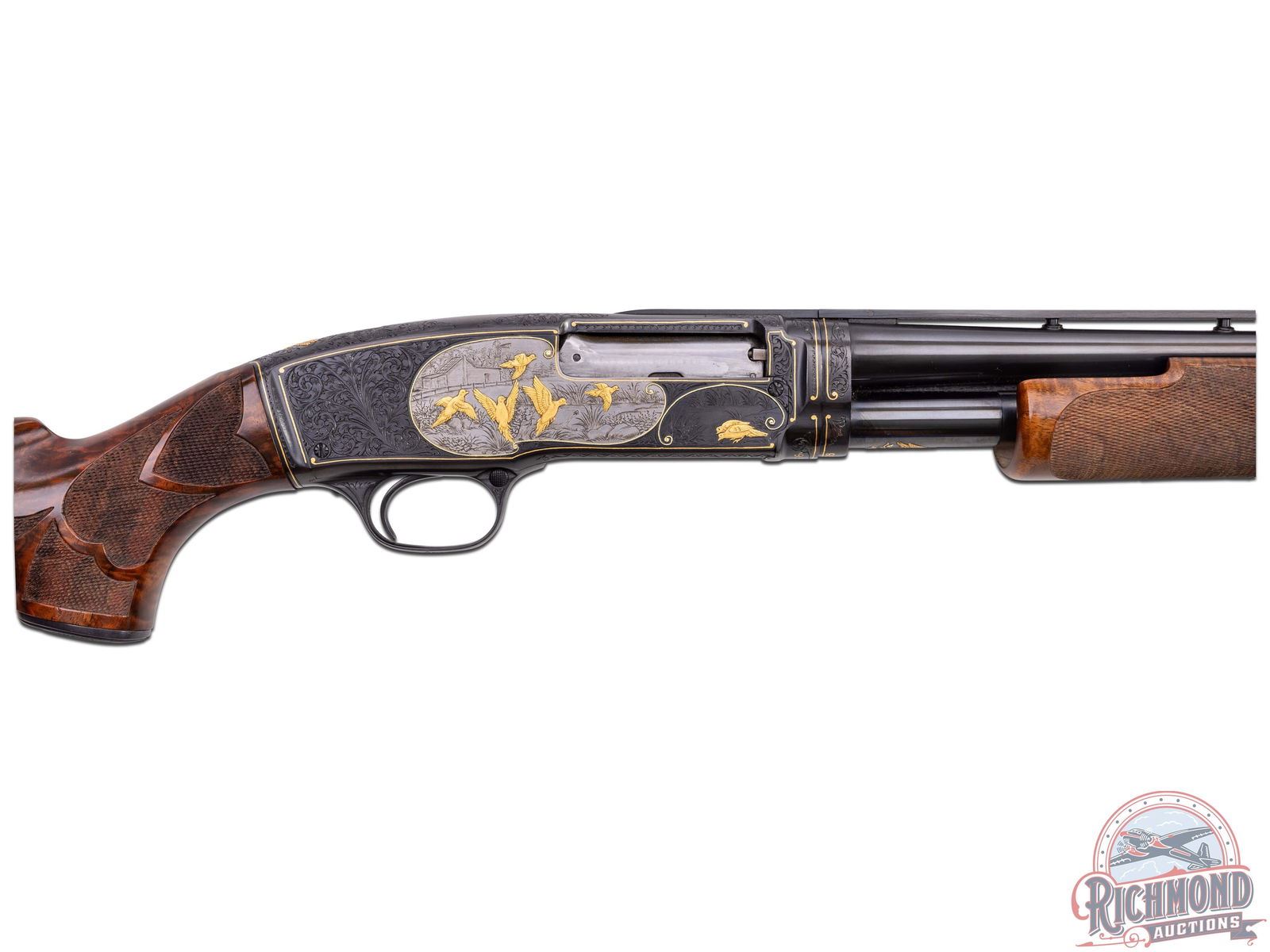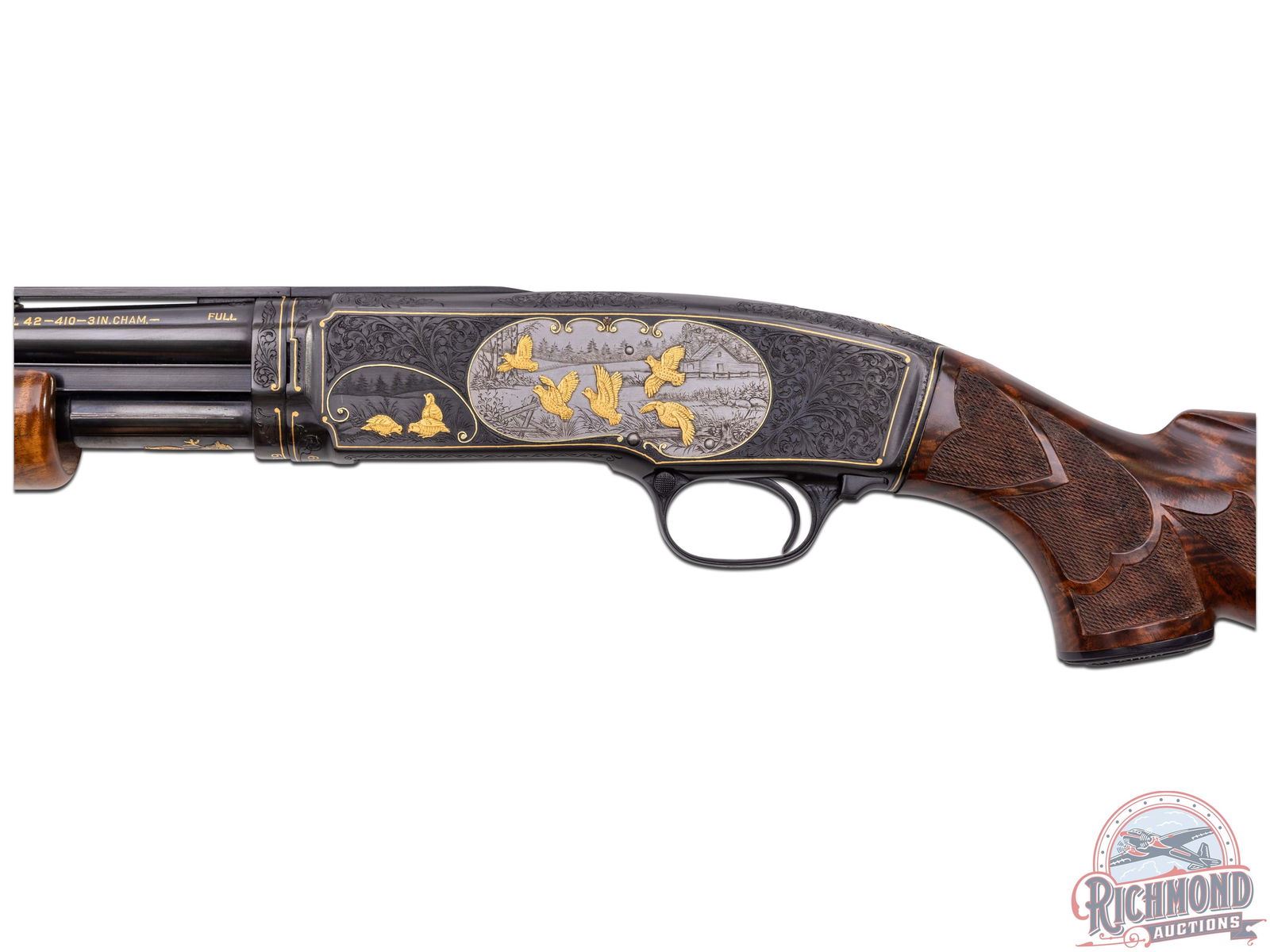 Lot 739 Amazing Winchester Model 42 Pigeon Grade 410 GA Shotgun Angelo Bee Engraved & Gold Inlaid