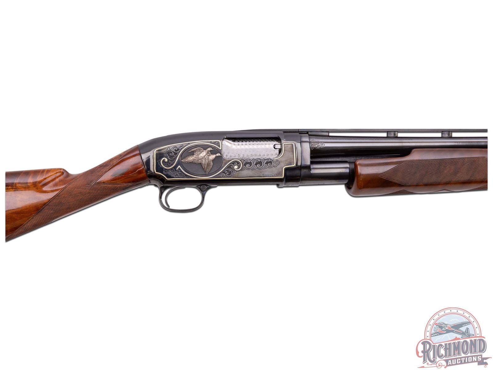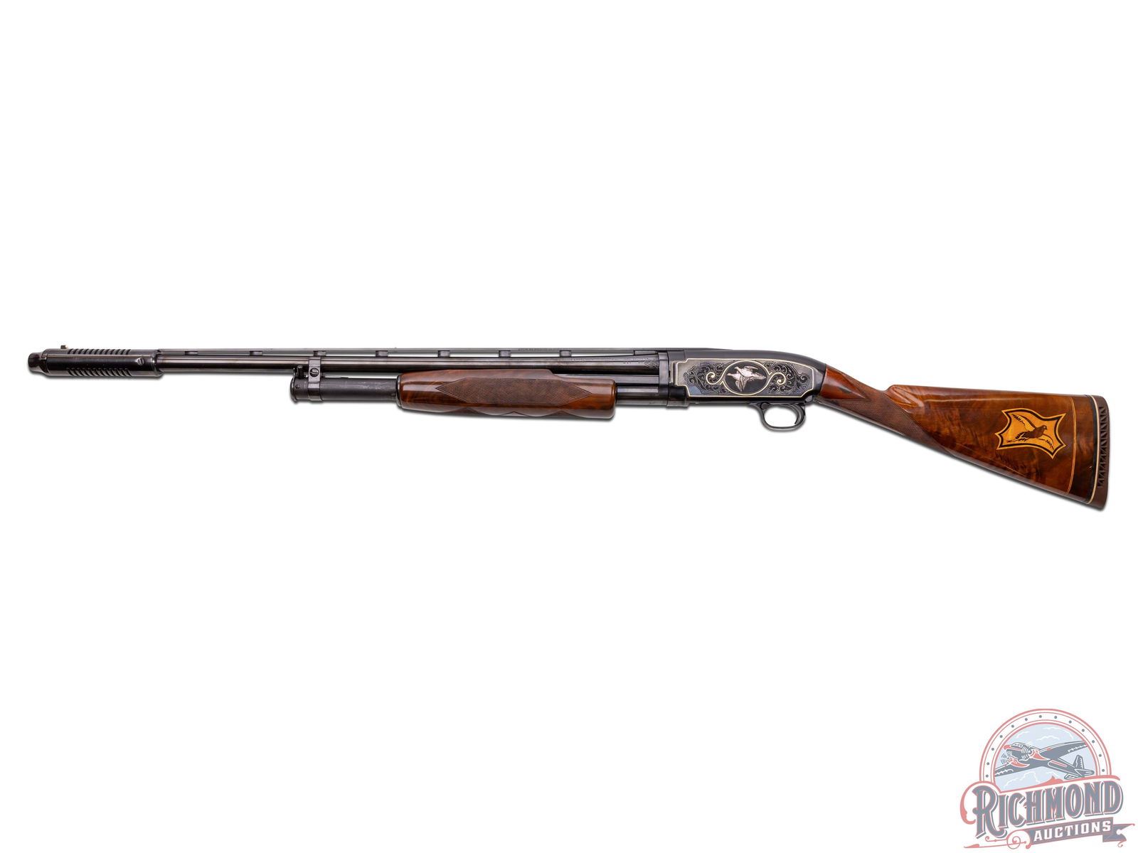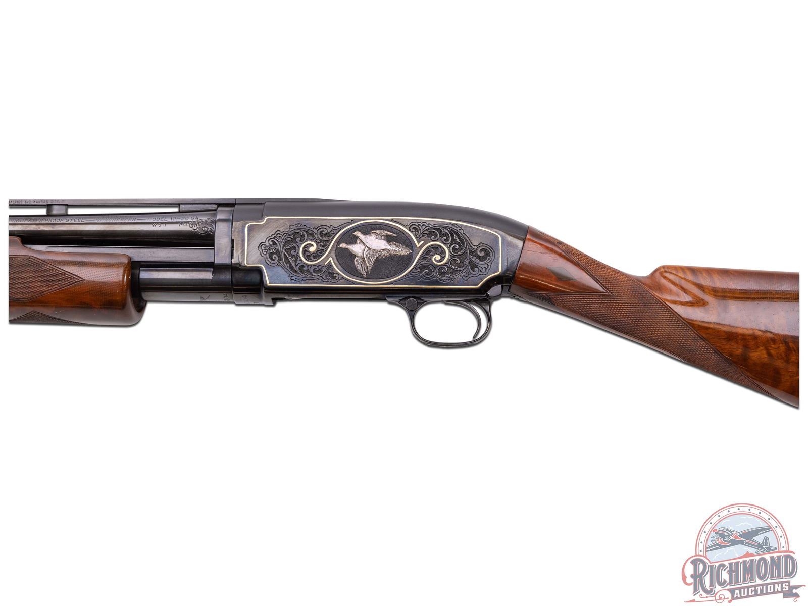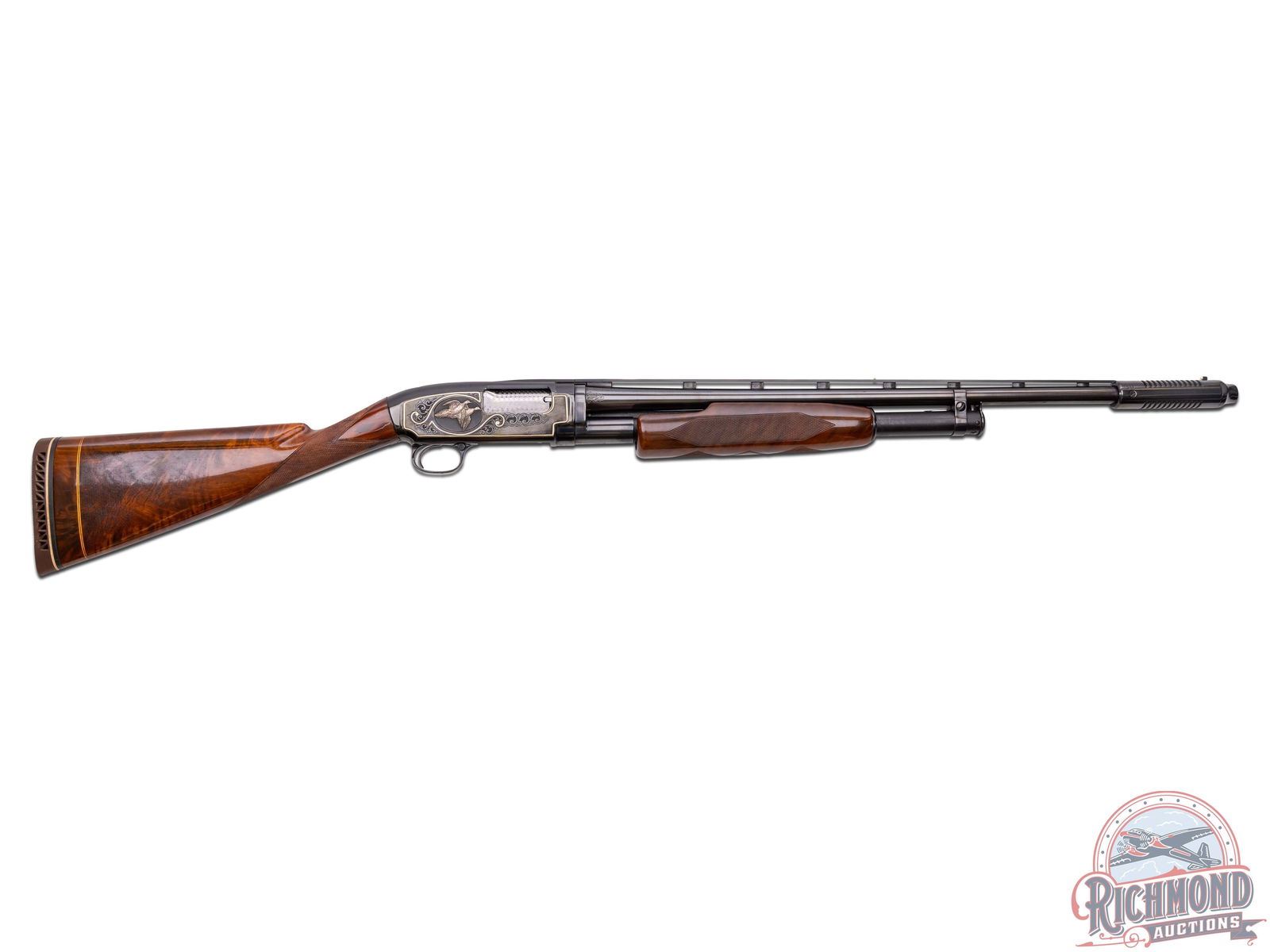 Lot 742 CUSTOM 1952 Winchester Model 12 Skeet Pigeon Grade 20 GA Pump Action Shotgun Engraved & Signed