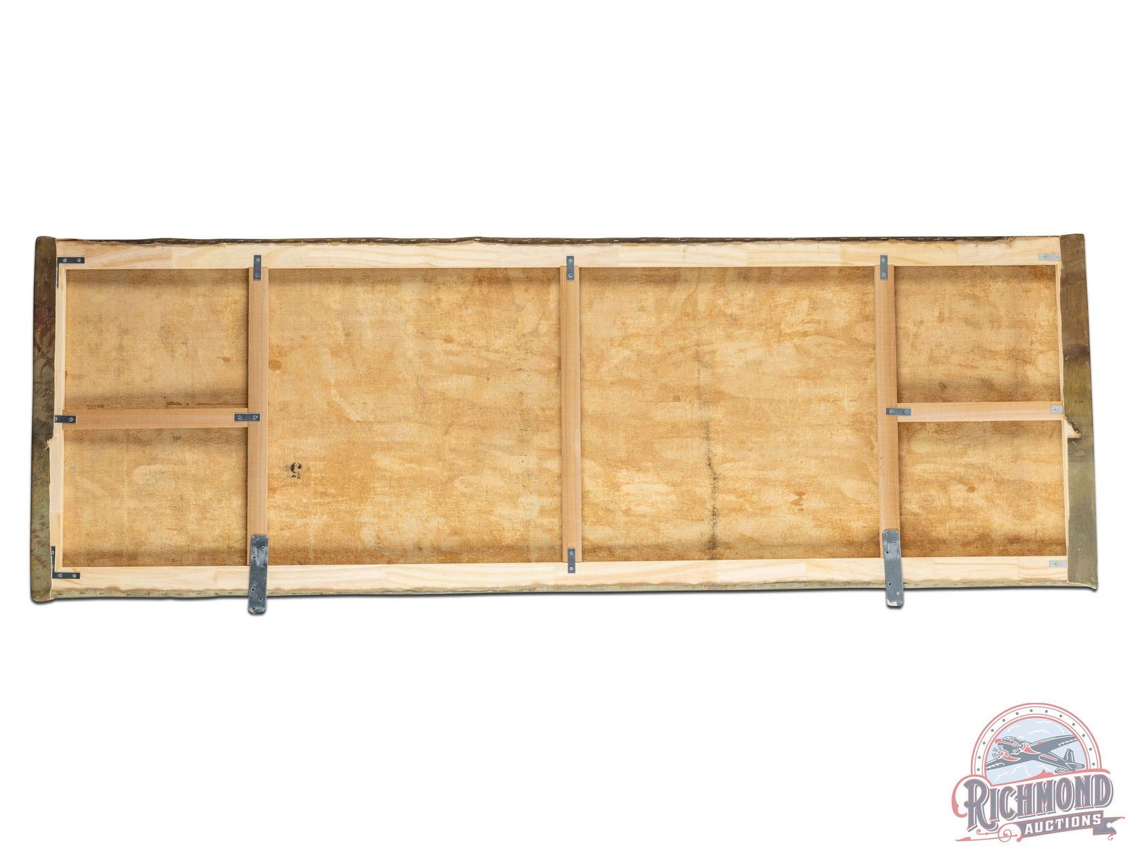 Each piece in this collection was masterfully painted on muslin, showcasing hunting and animal scenes that epitomize the genteel sporting life of the East Coast during that era. Separated in the mansion by mahogany columns and detailed molding, the paintings vary in size and were likely painted off-site with specific wall measurements provided to the artist. A unique number was placed on the reverse of each painting that is believed to correspond to a specific wall location in the room. Due to this unique installation method, no artist signatures have been discovered. It is speculated that signatures may have been placed at the bottom of each painting or on one lone piece, subsequently concealed by ornamental mahogany panels and trim, but potentially removed during the extraction process. The paintings were removed from the mansion before its demolition, preserving a unique slice of American artistic and cultural history. This feature adds to their individual allure, charm, and historical significance.