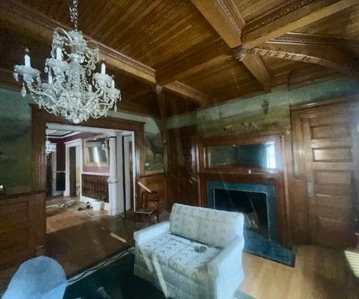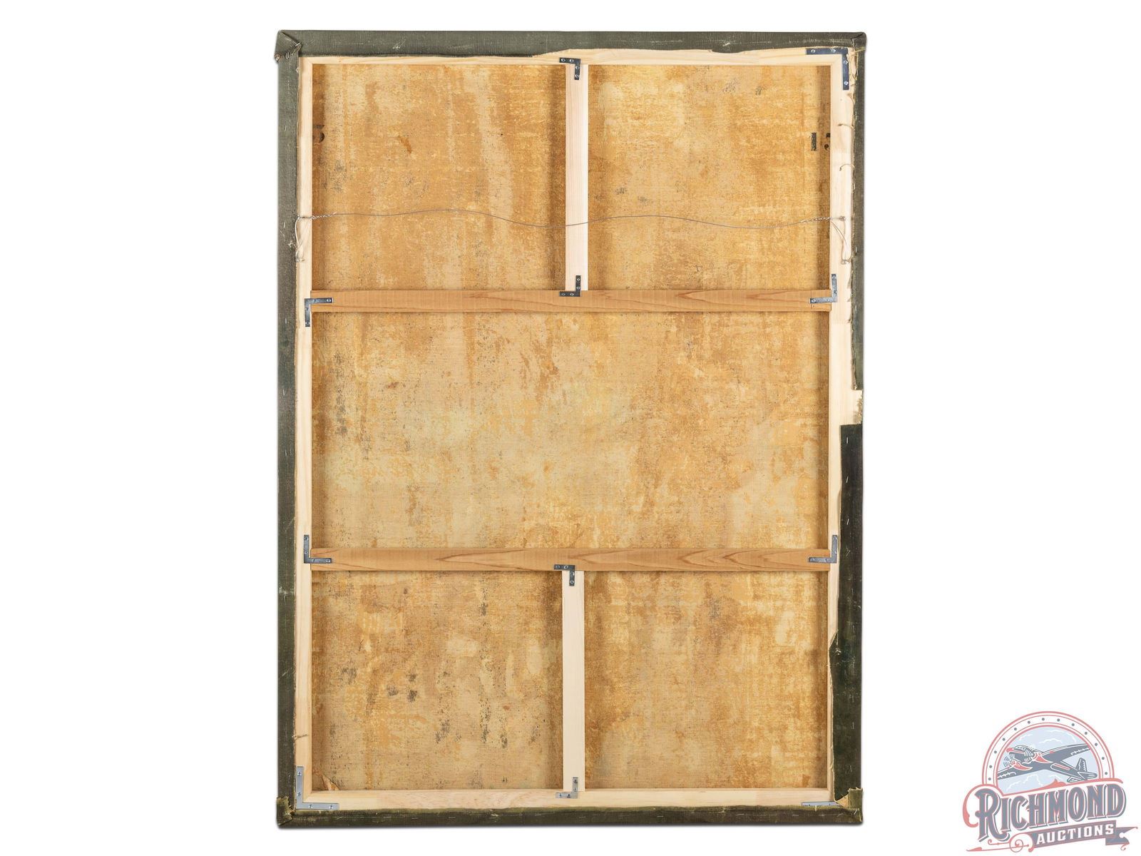 Each piece in this collection was masterfully painted on muslin, showcasing hunting and animal scenes that epitomize the genteel sporting life of the East Coast during that era. Separated in the mansion by mahogany columns and detailed molding, the paintings vary in size and were likely painted off-site with specific wall measurements provided to the artist. A unique number was placed on the reverse of each painting that is believed to correspond to a specific wall location in the room. Due to this unique installation method, no artist signatures have been discovered. It is speculated that signatures may have been placed at the bottom of each painting or on one lone piece, subsequently concealed by ornamental mahogany panels and trim, but potentially removed during the extraction process. The paintings were removed from the mansion before its demolition, preserving a unique slice of American artistic and cultural history. This feature adds to their individual allure, charm, and historical significance.