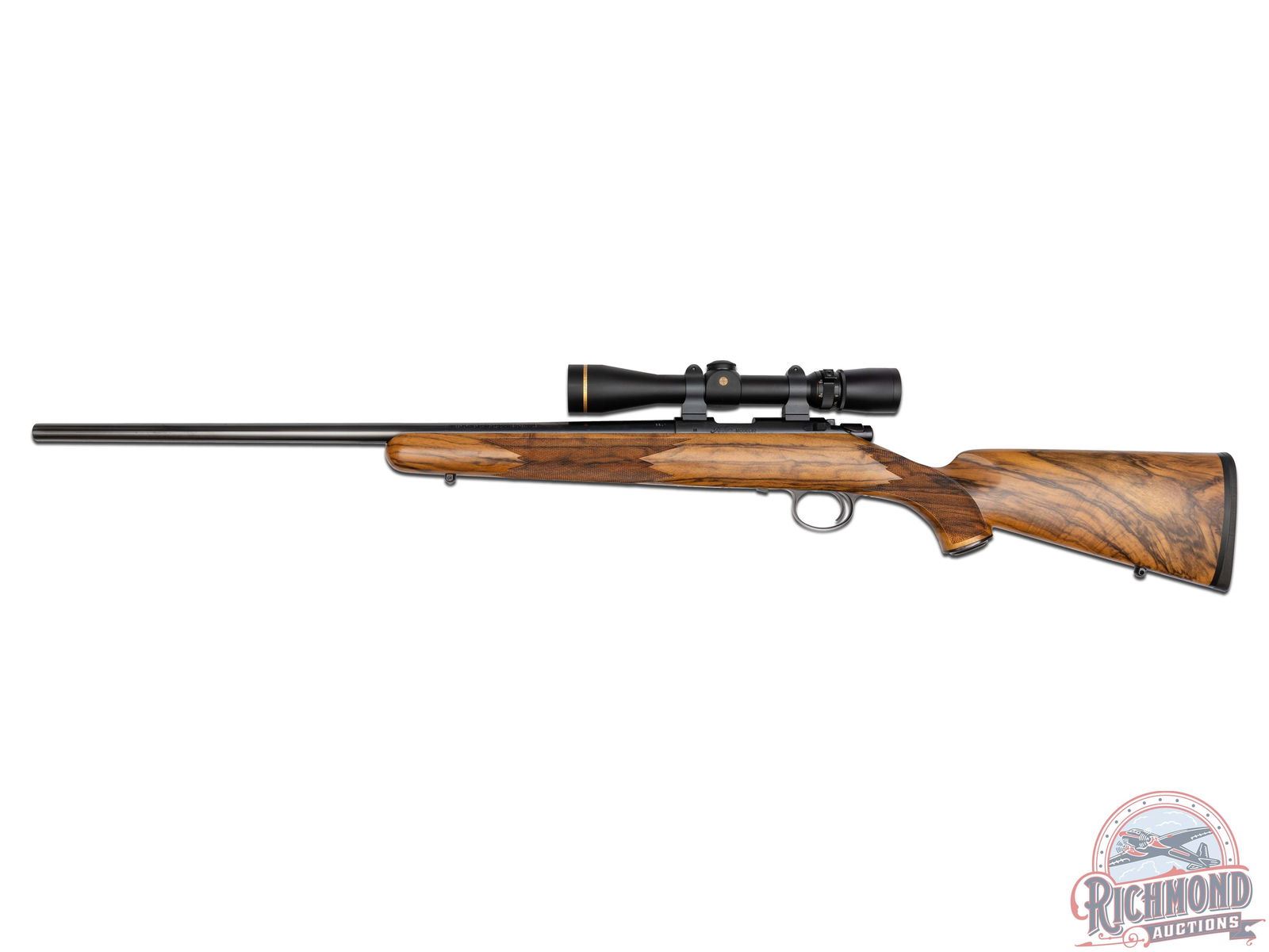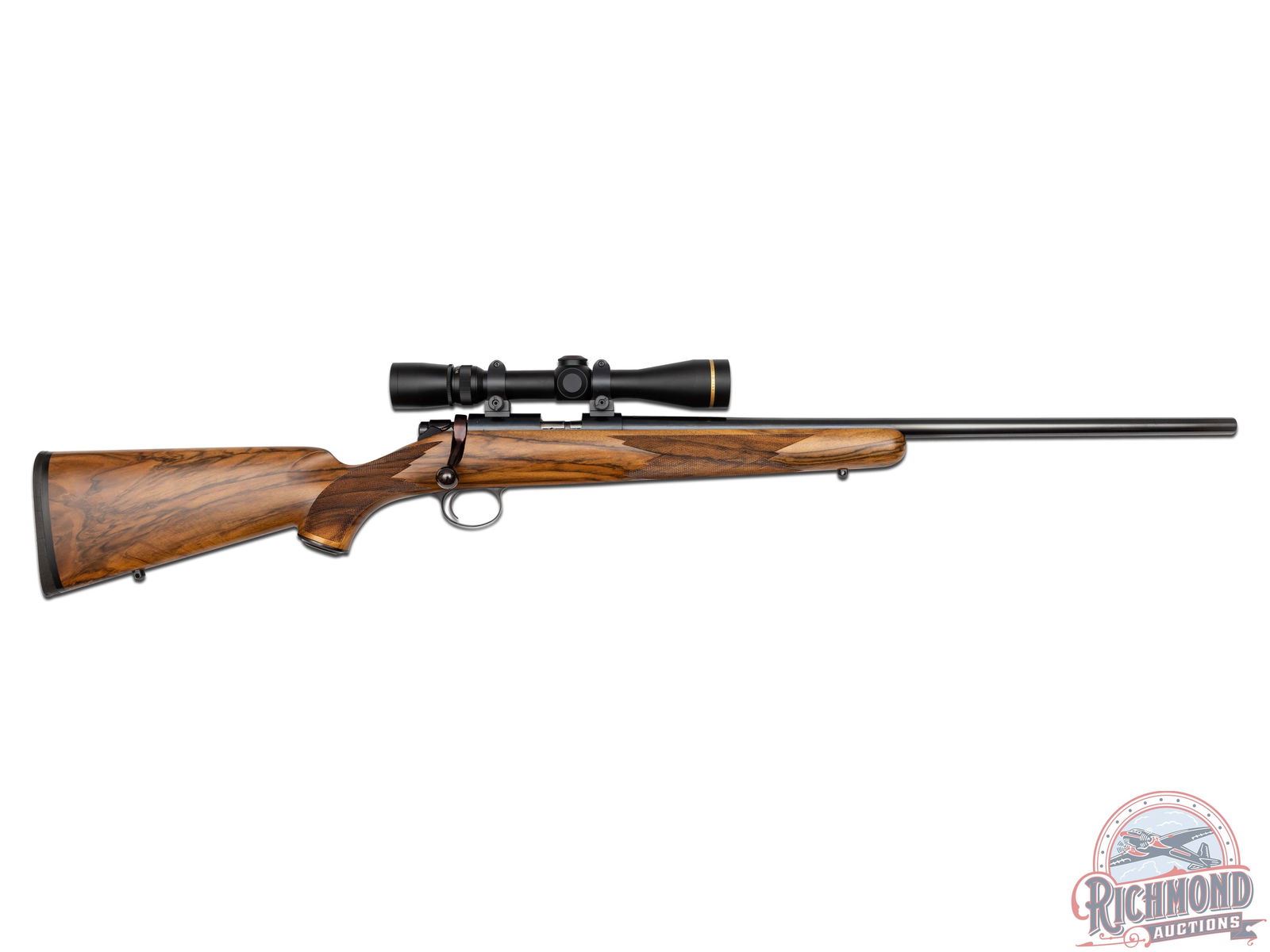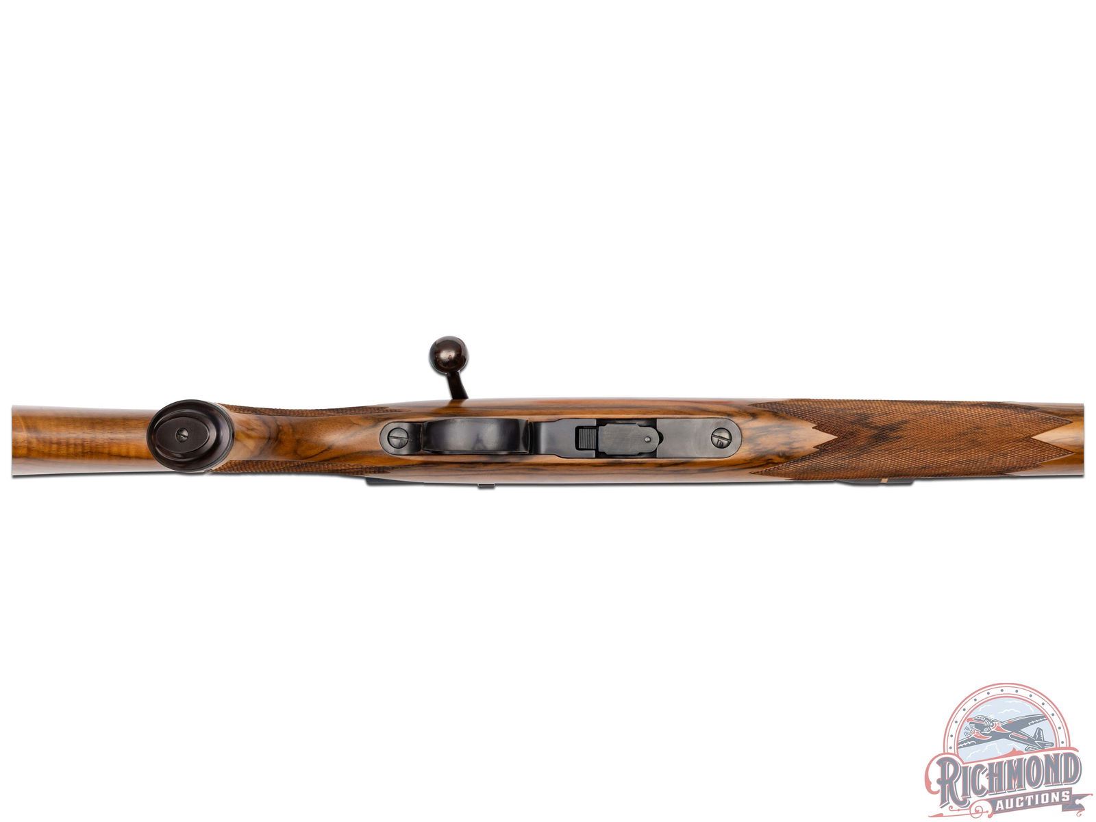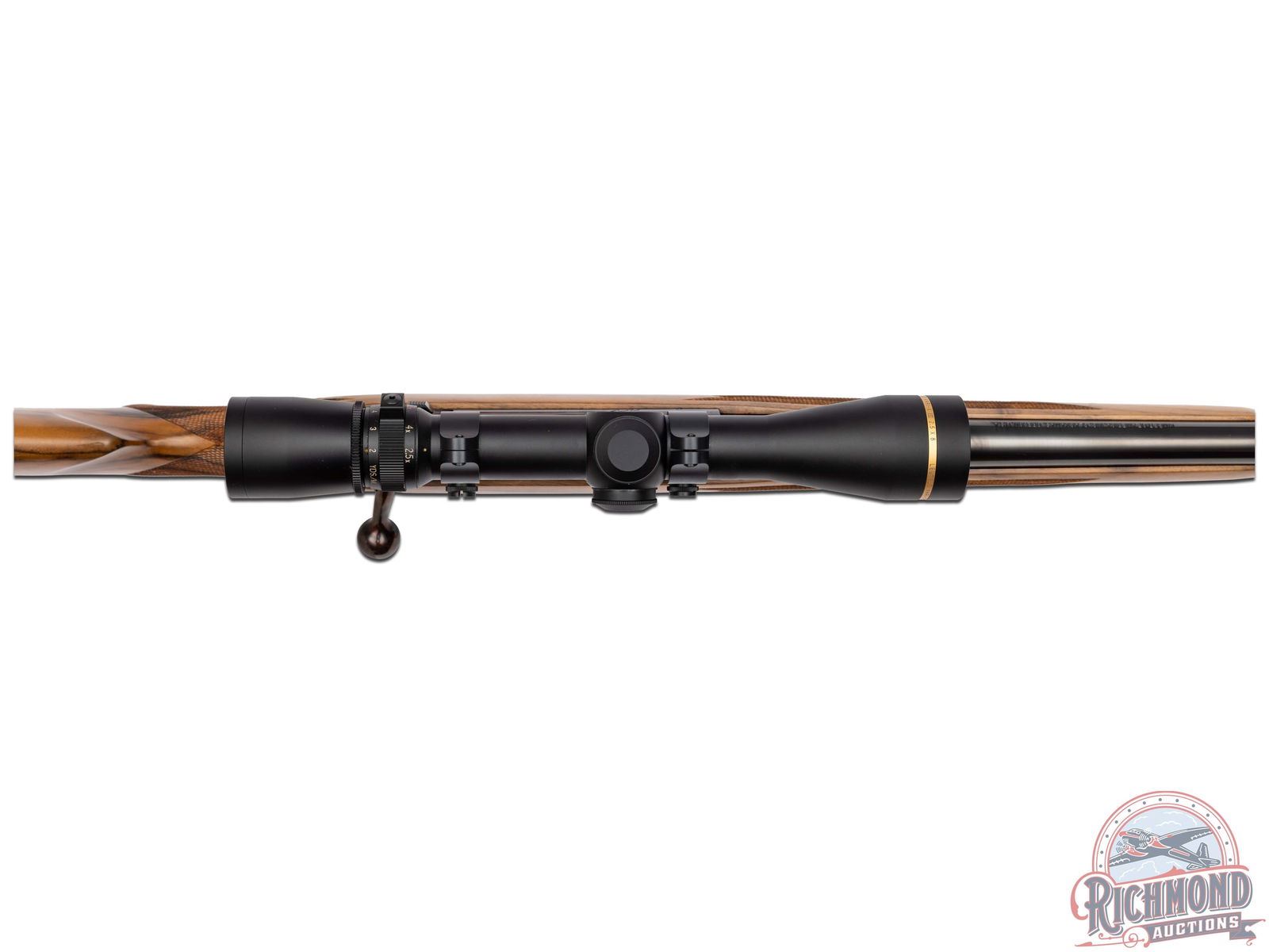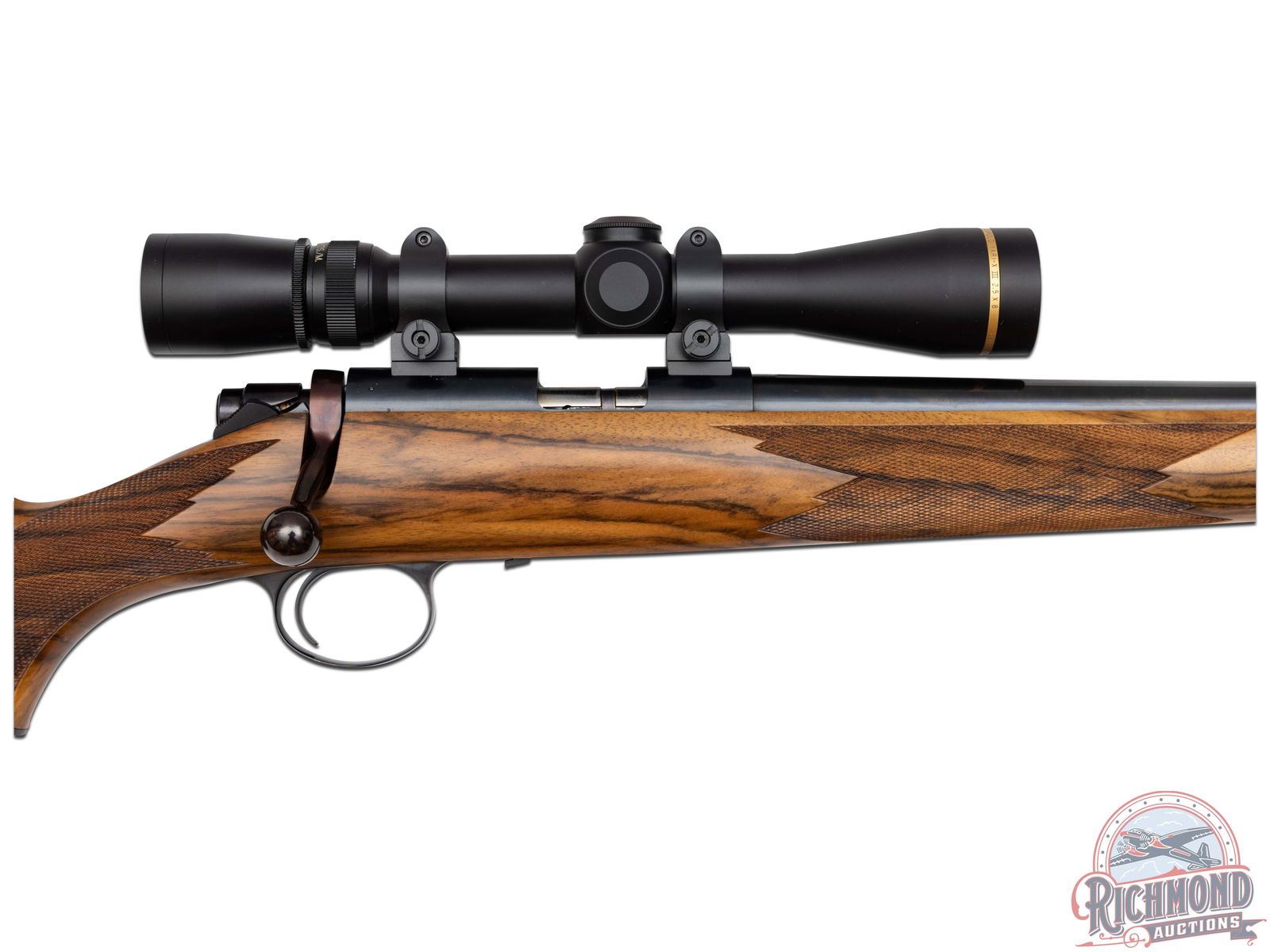 Great overall condition retaining 97% original finish, with limited handling marks. Rear of bolt and knob has turned a plum tone. Stock shows crisp checkering and light handling marks. Excellent bore, unfired. Clear optics. Box is in good condition with limited minor handling and storage marks.
