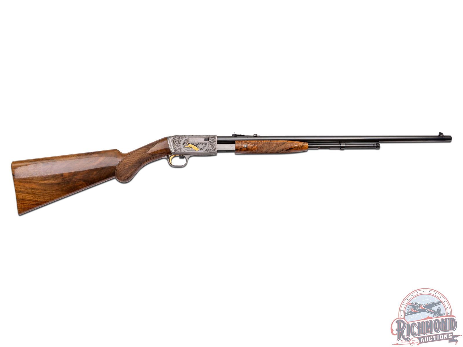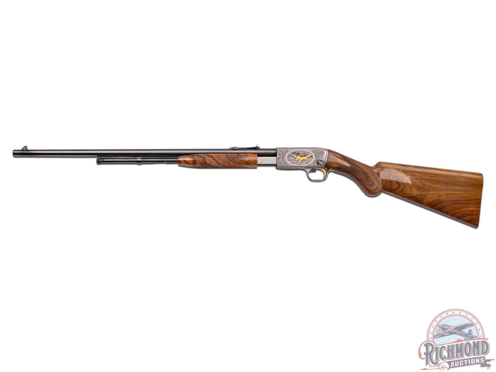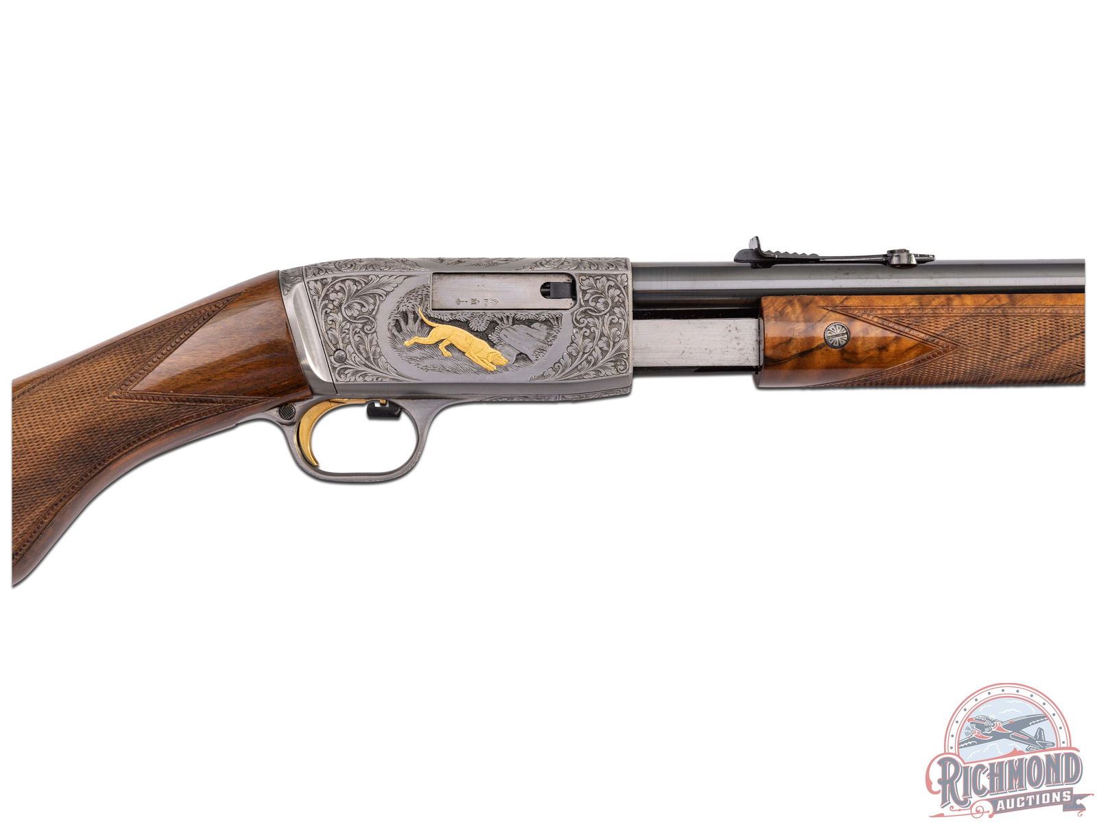Lot 795 Angelo Bee Engraved Belgium Browning Trombone 22LR Grade III Slide Action Rifle