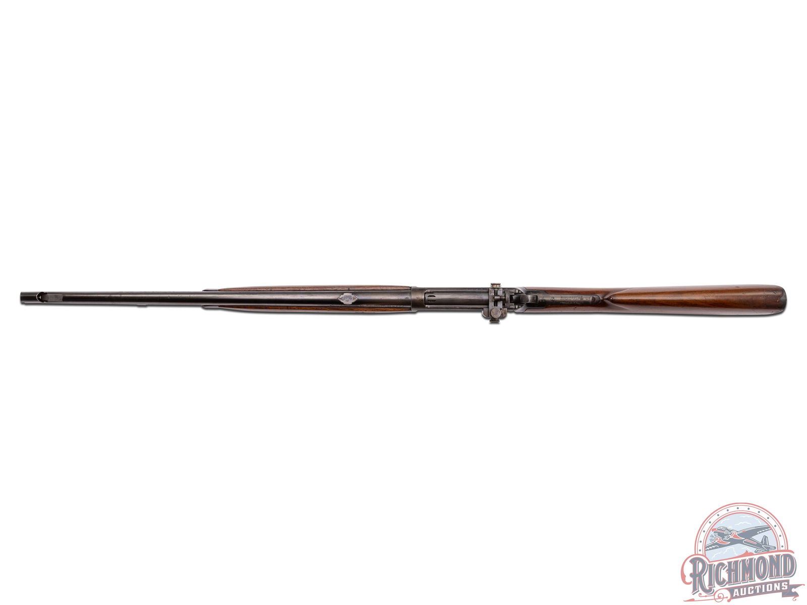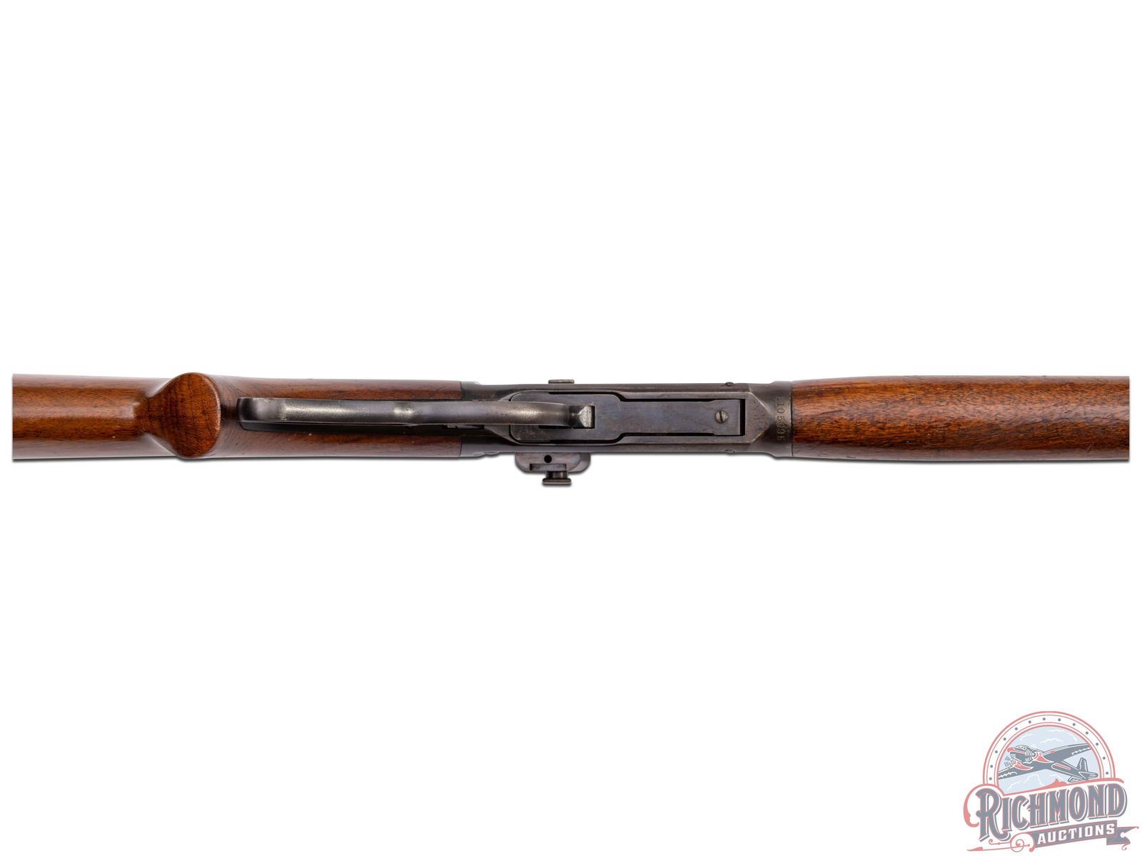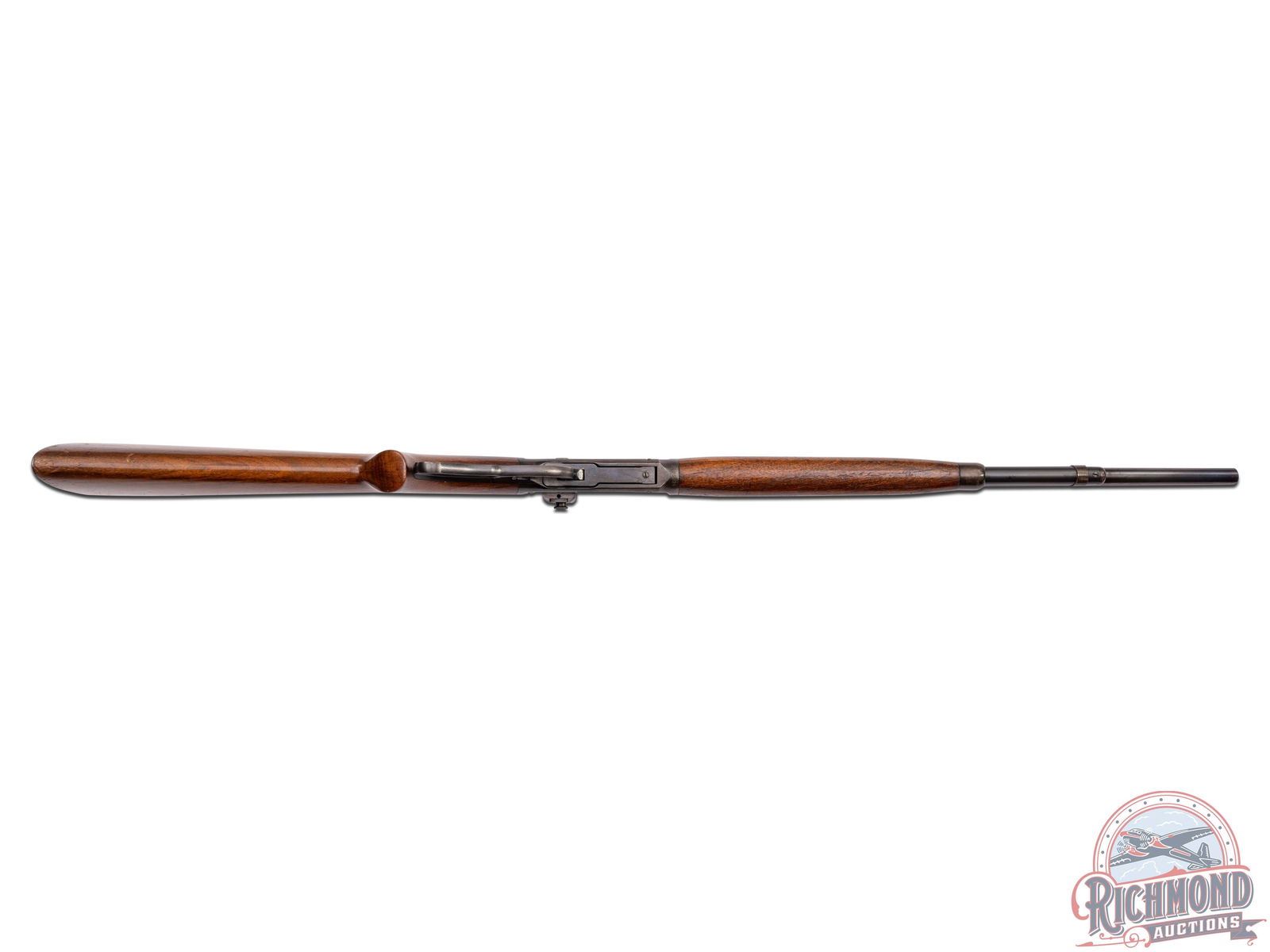 Retains 60% finish with flaking on the receiver typical for this era. 3" area of light pitting on the right side of the barrel. Oxidation spot on the heel of the butt plate. Stock shows several scratches and dings most notable on the left side of the forearm. Nice bore and good mechanics.