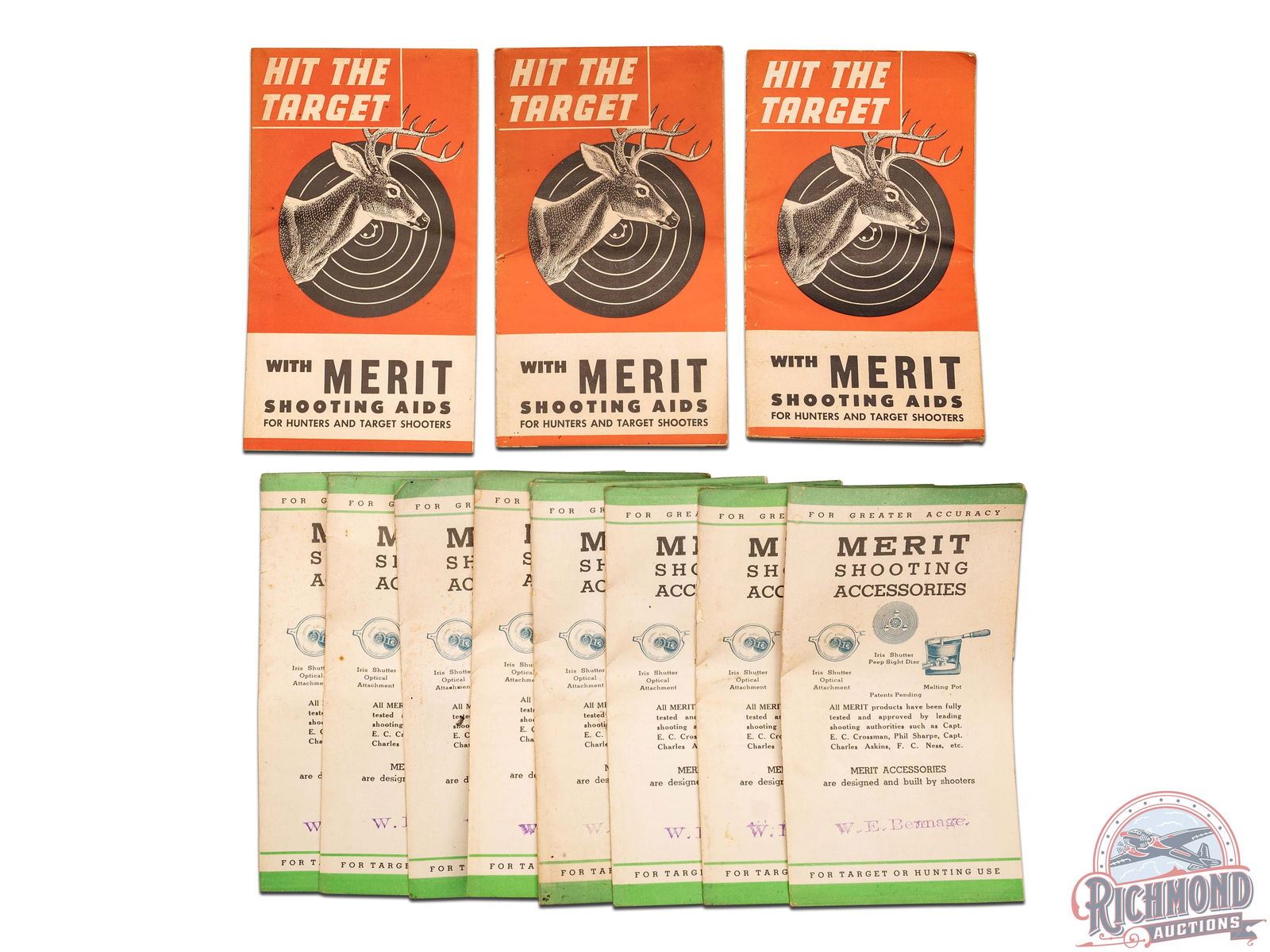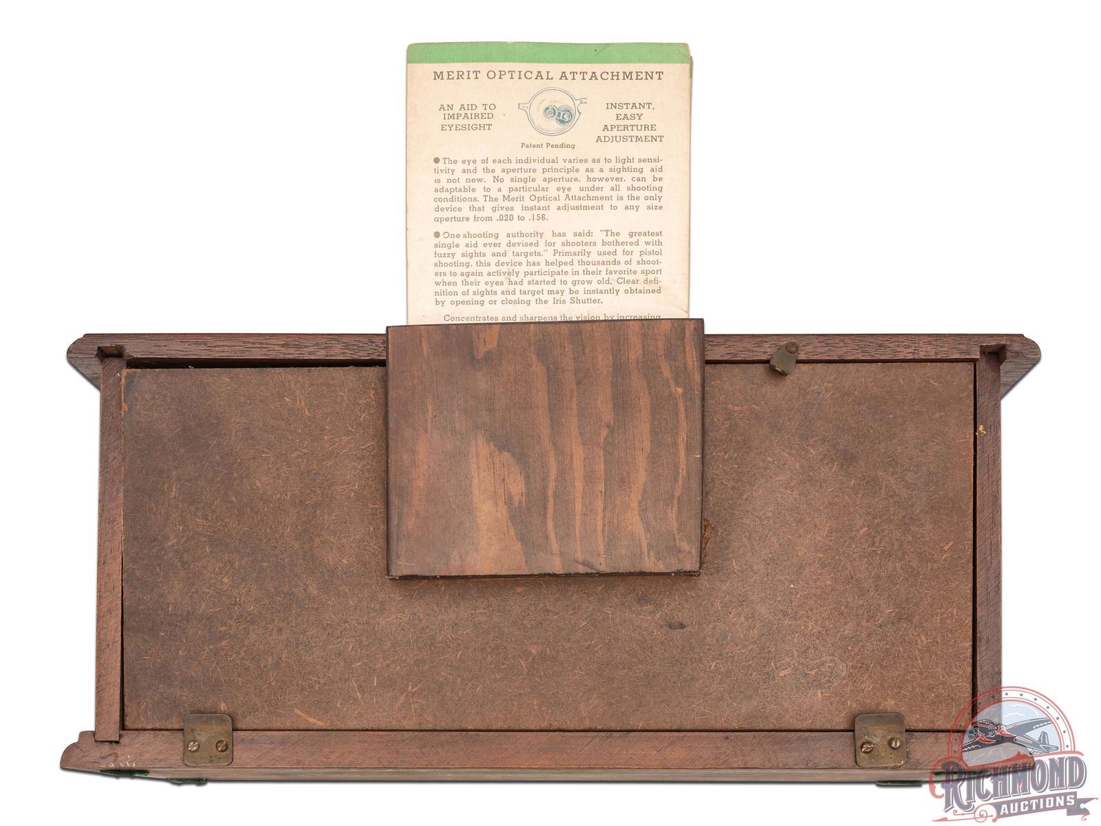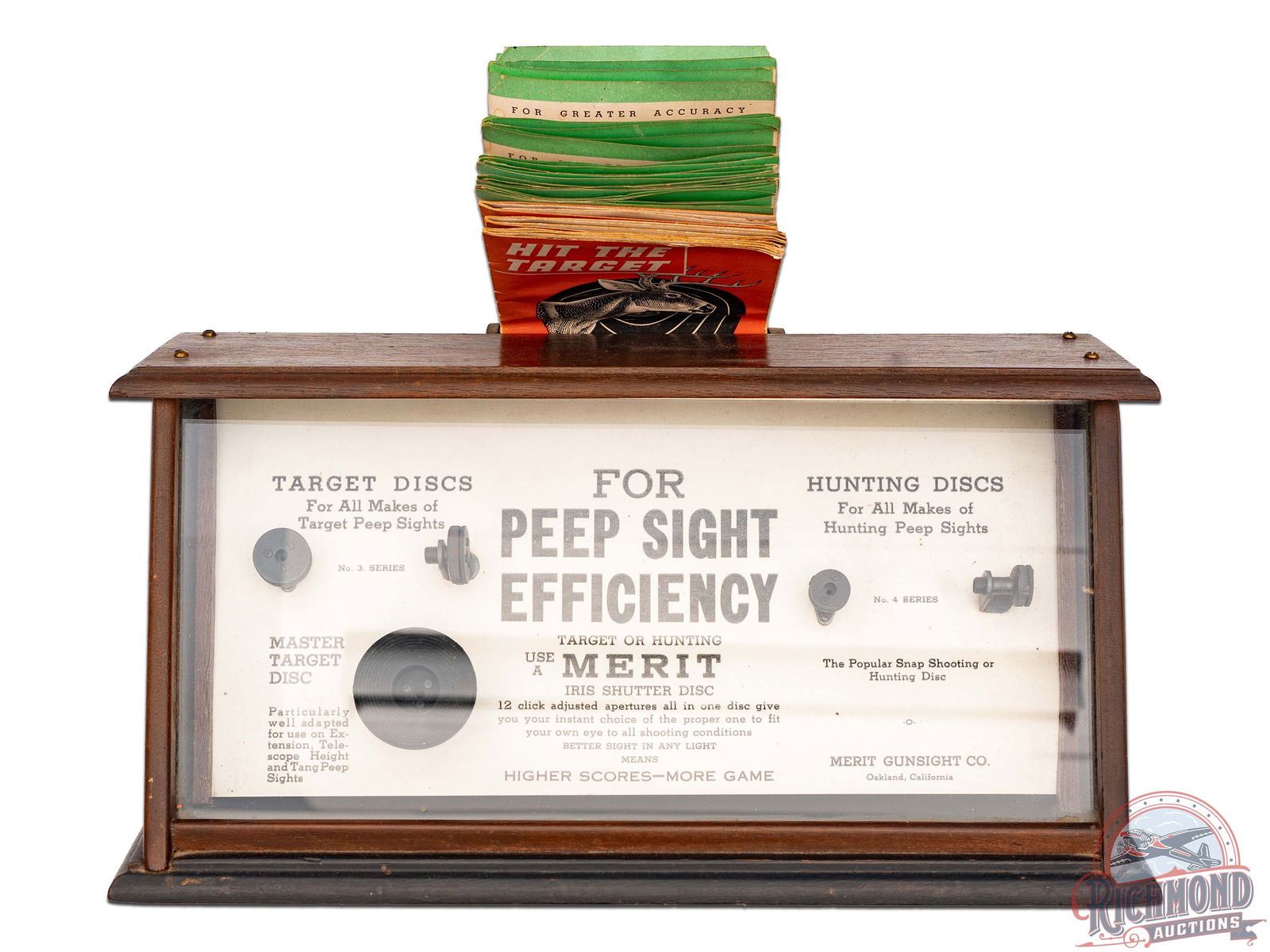 Lot 842 RARE Merit Gunsight Co "Peep Sight Efficiency" Wood Counter Sales Display & Brochures