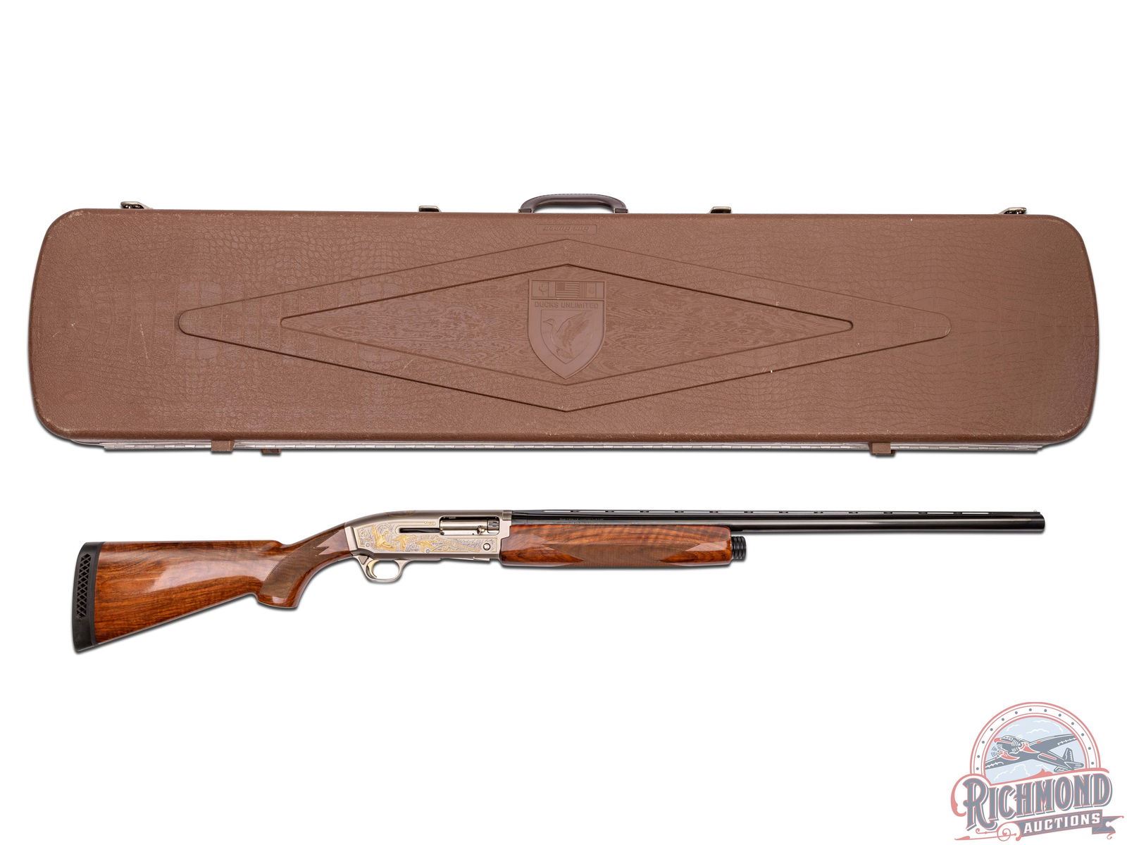 Lot 893 Belgium Browning Gold Ducks Unlimited Semi-Auto Shotgun with Case