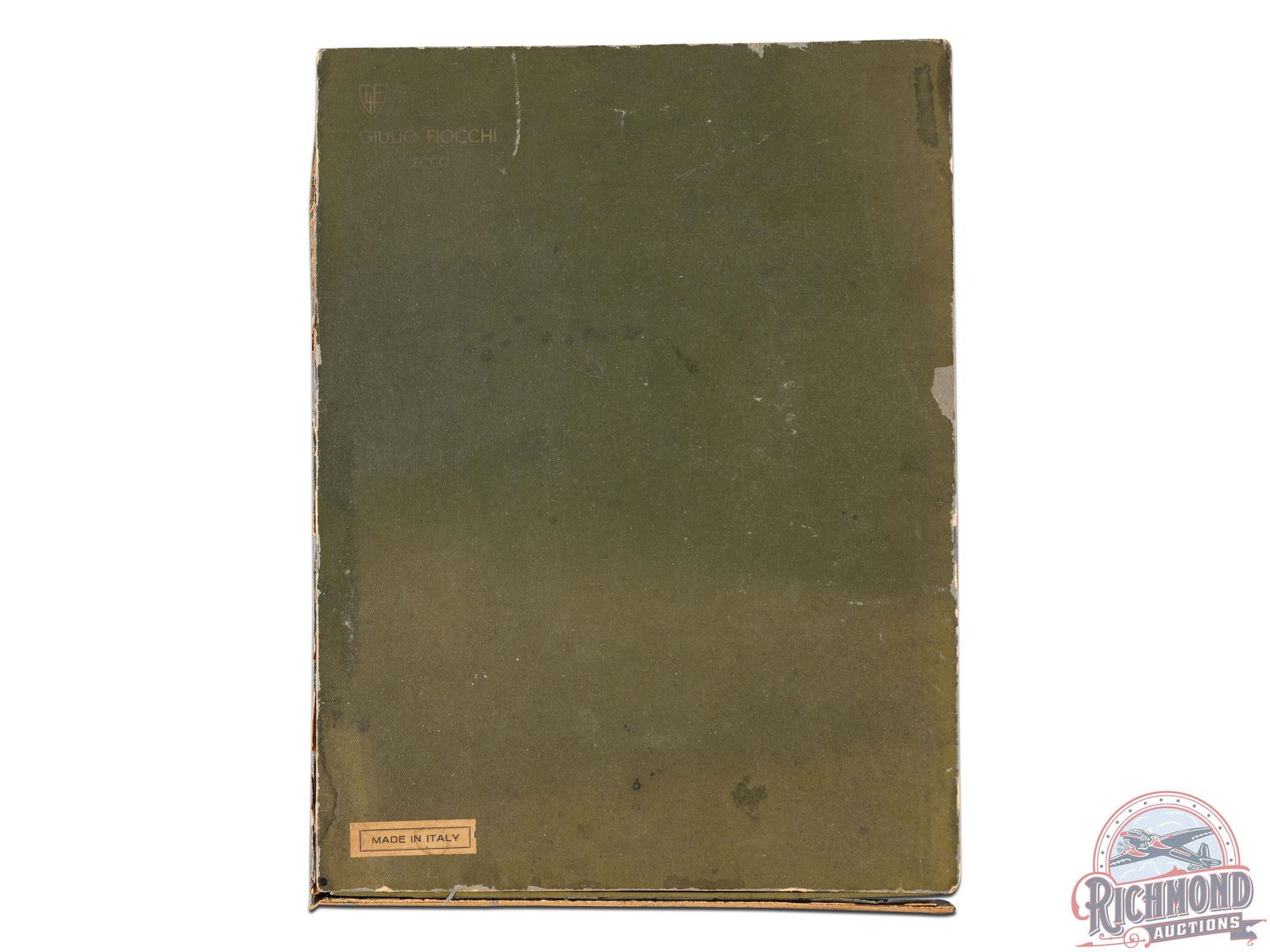 1950's vintage Guilio Fiocchi Shotgun Shell salesman's kit with Fiocchi entire line of paper 12 gauge shotgun shells - 32 in all. Each shell is a primed empty and attached to cardboard case bearing Fiocchi label inside with hinged lid saying "Made in Italy".