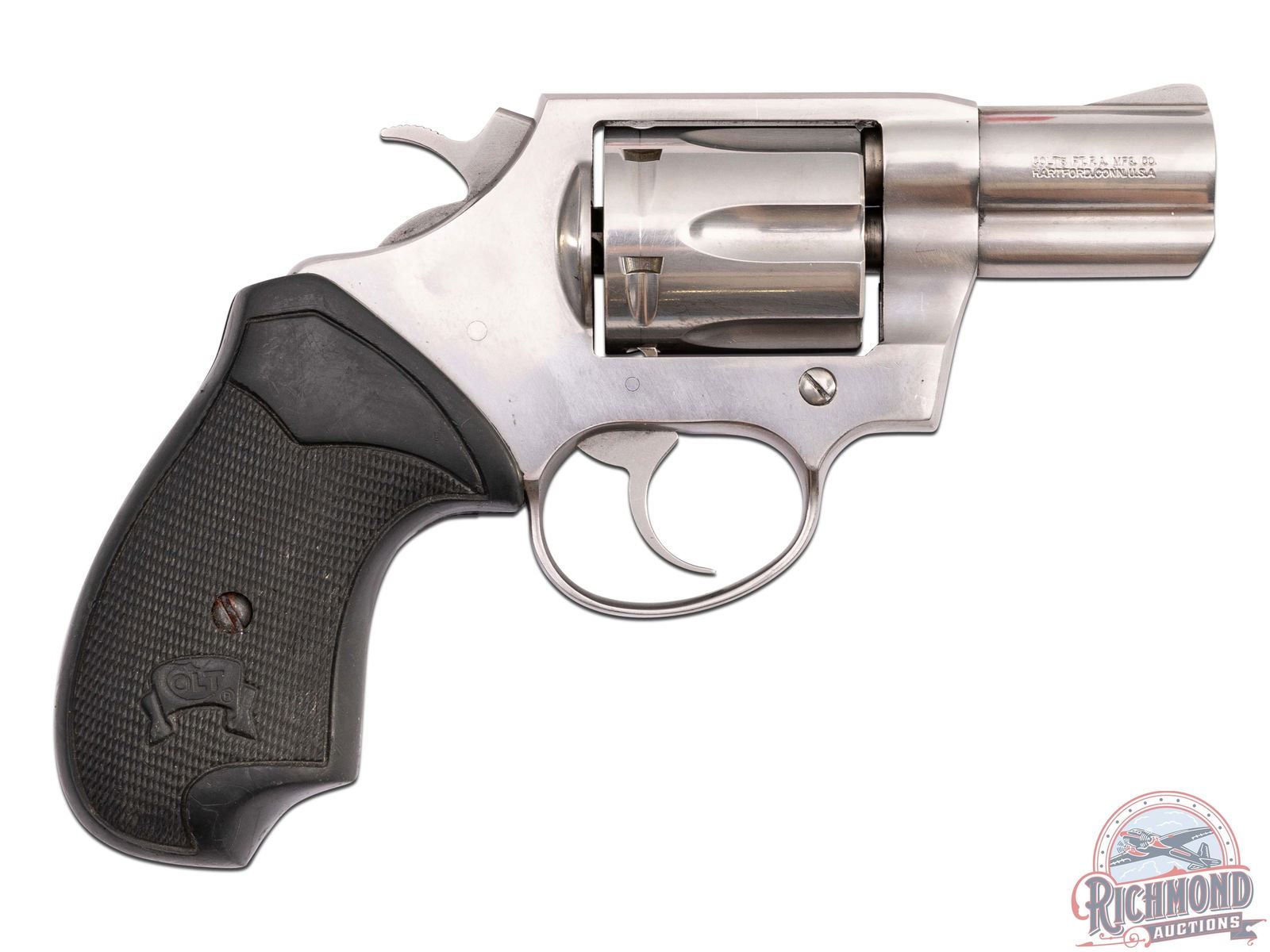 Manufactured in 1998 and only produced for 2 years! This Detective Special features a 2" snub nose barrel with underlug and integrated rear notch sight and ramp front sight. Stainless steel finish with a six-round fluted swing-out cylinder chambered for the .38 Special cartridge. Fitted with Colt factory black rubber checkered grips. A great conceal carry option! CALIBER: 38 SPL. S/N: 7731SV. FFL STATUS: Modern.
