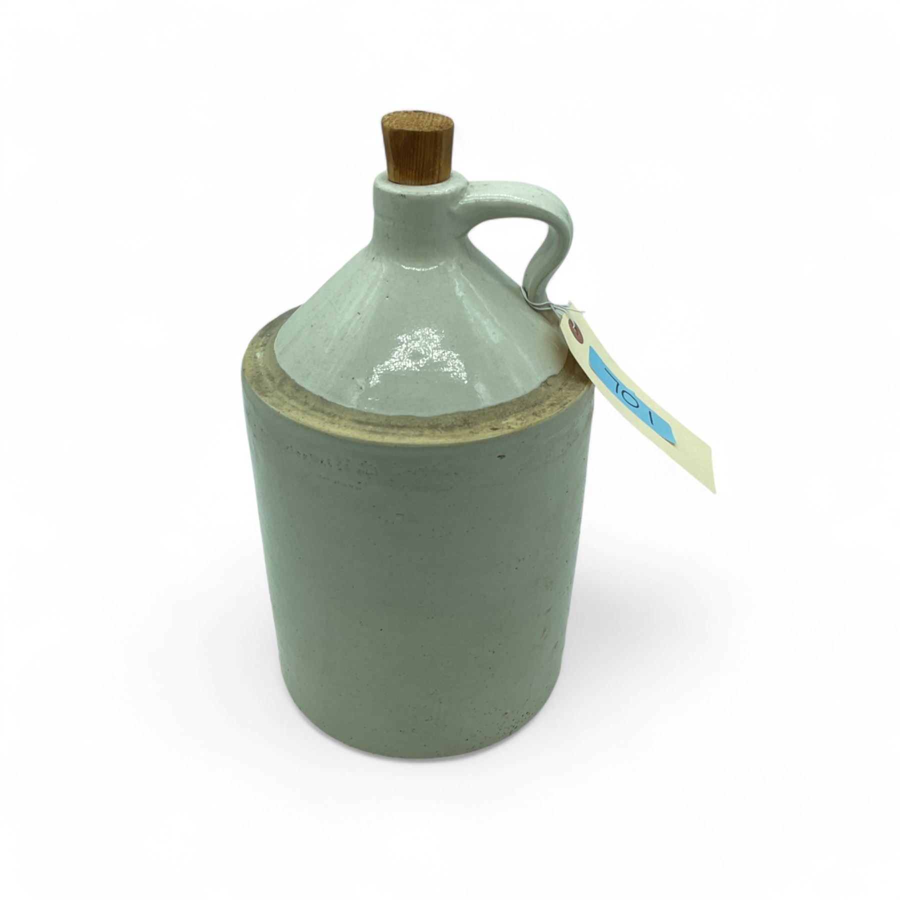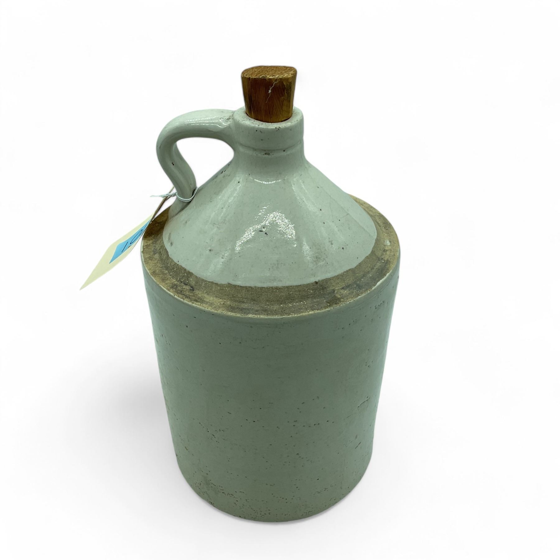 Lot 701 Stoneware Jug with Wood Plug Stopper, 12" Tall x 7-1/4" Diameter, Marked "N8 9616060" on Bottom
