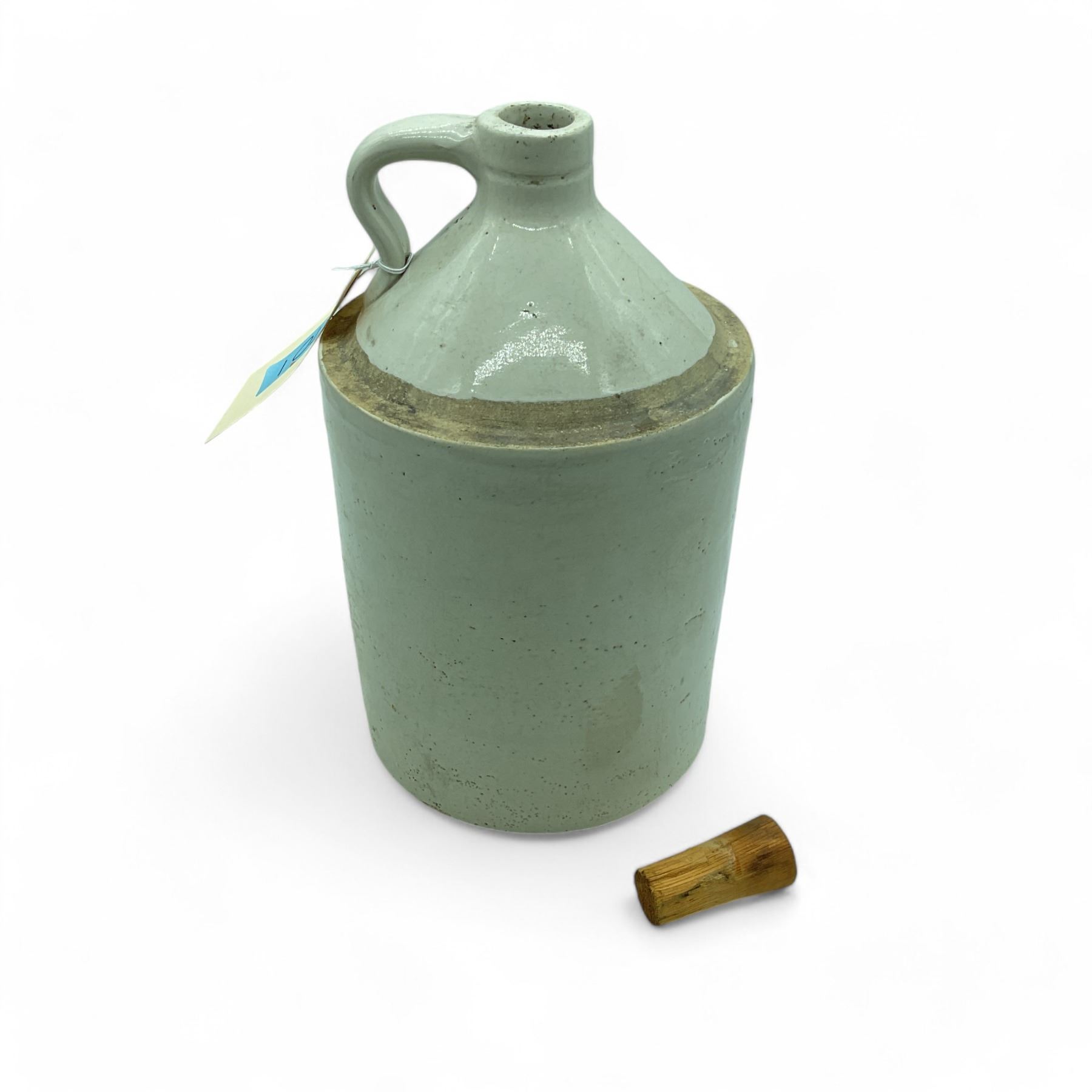 Stoneware Jug with Wood Plug Stopper, 12" Tall x 7-1/4" Diameter (at widest part), Marked "N8 9616060" on Bottom